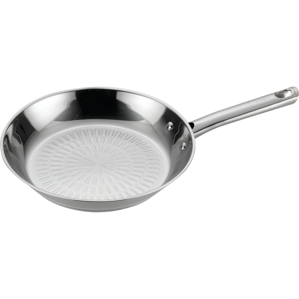 Stainless steel fry pan features the Techno Release raised pattern on the interior of the pan for easier release of food and easier cleanup. Constructed of premium quality stainless steel and compatible with all cooktops, including induction. Riveted stainless steel handle provides an ergonomic and secure grip. Dishwasher and oven safe.