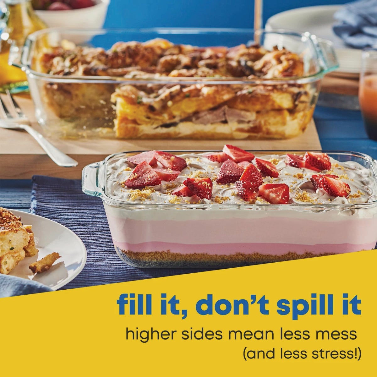 Transport food safely, easily and at the perfect temperature with this large Pyrex Deep baking dish with a 11.25 In. W. x 4.25 In. H. x 16.5 In. L. designed-to-fit insulated bag. The dish has a snug-fitting lid to prevent spills, and a hot/cold pack ensures that food arrives ready to enjoy. Secure-fit lid stores and keeps contents fresh.