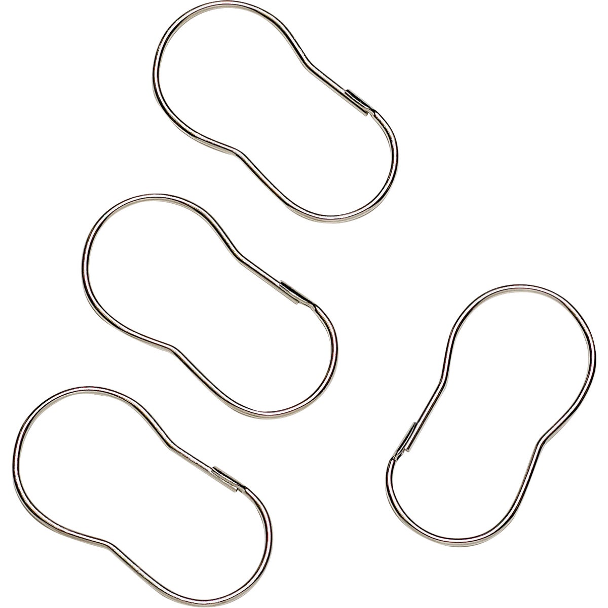 Plain wire shower curtain rings fasten to curtain rod much like safety pins. 12 per box. Chrome finish.