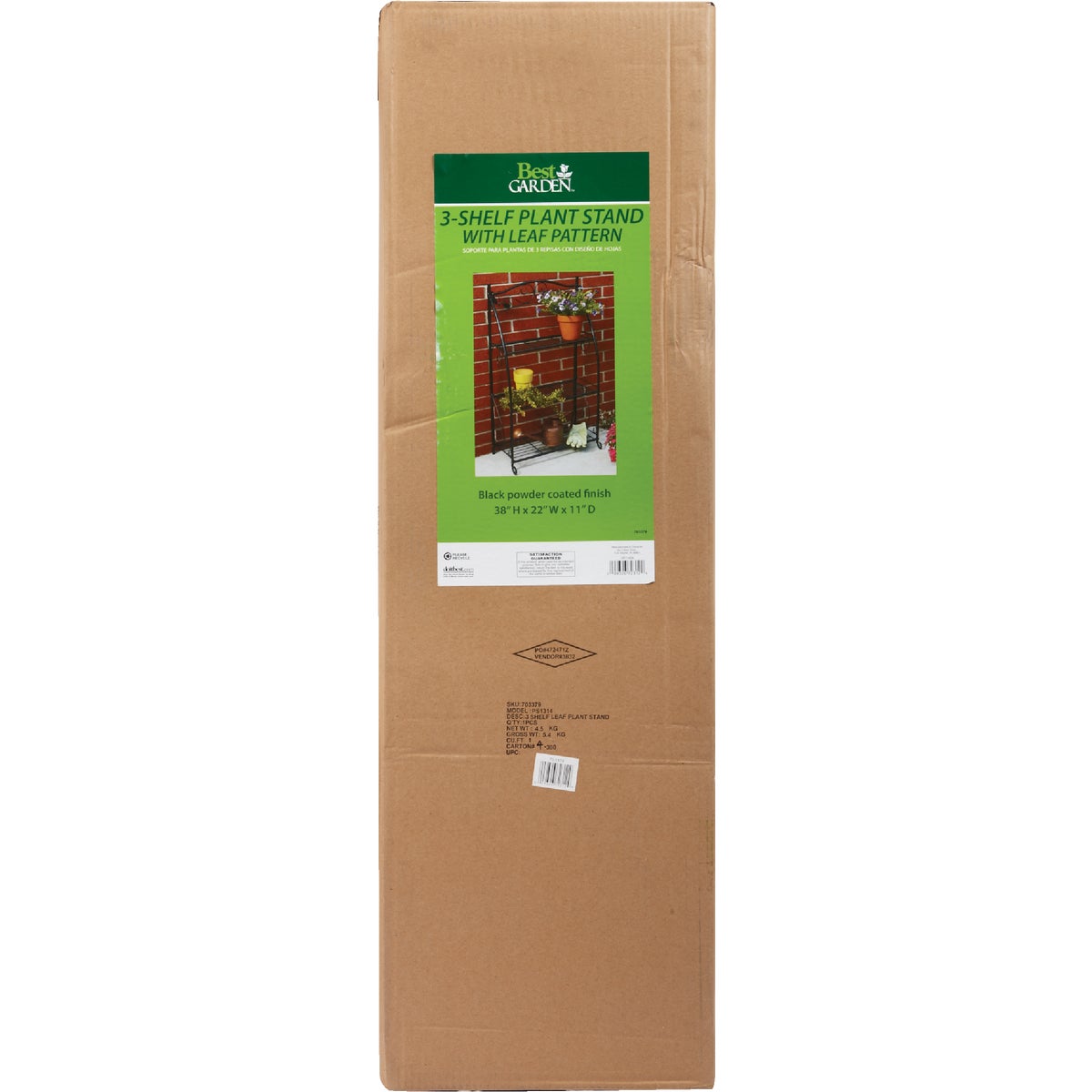 Black steel plant stand featuring a decorative scroll and leaf design. Ideal for indoor or outdoor use. 22 In. W. x 11-1/2 In. D.