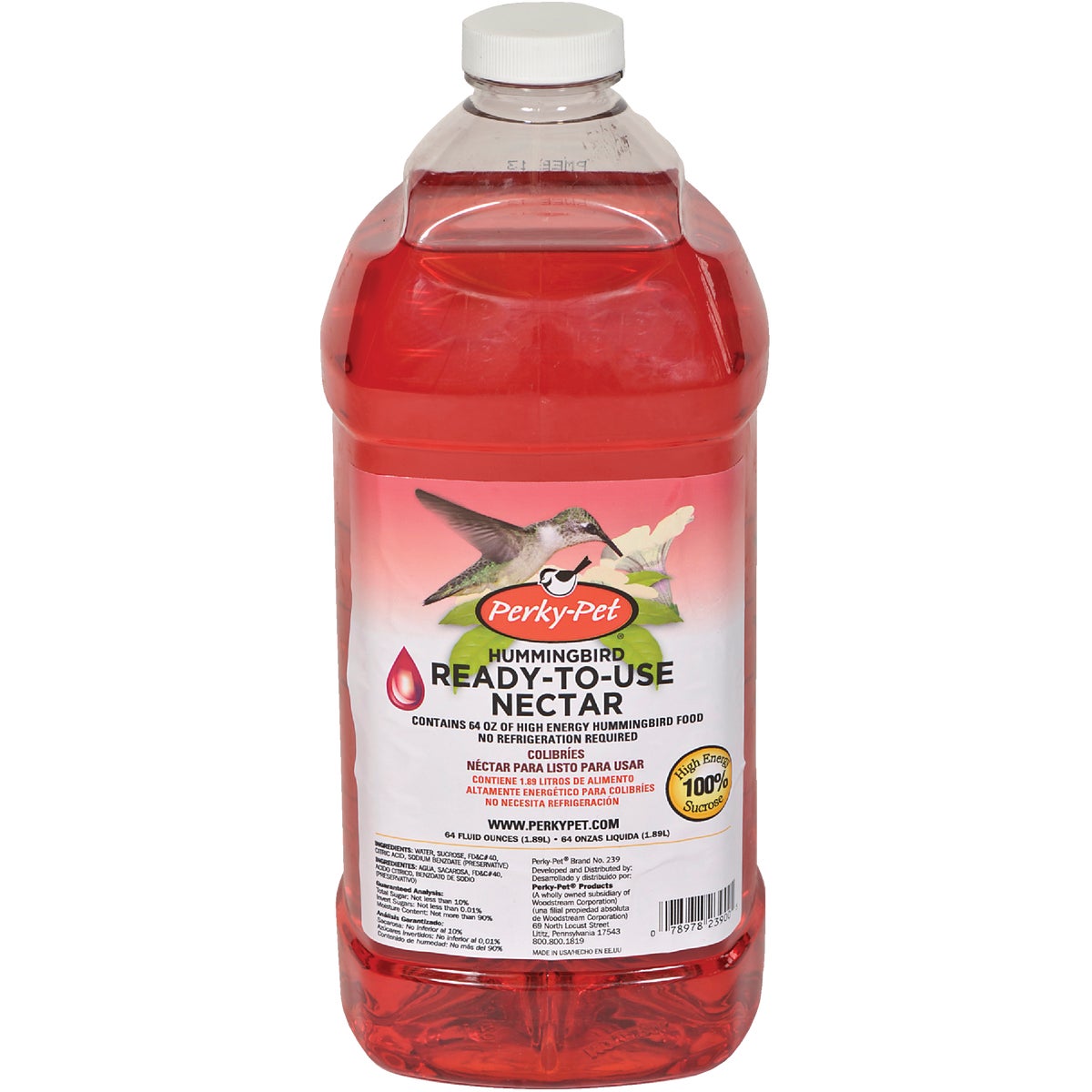 Ready to use nectar requires no mixing or boiling. Contains 100% sucrose, a liquid that simulates flower nectar and will keep hummingbirds full of energy and eager to come back for more.