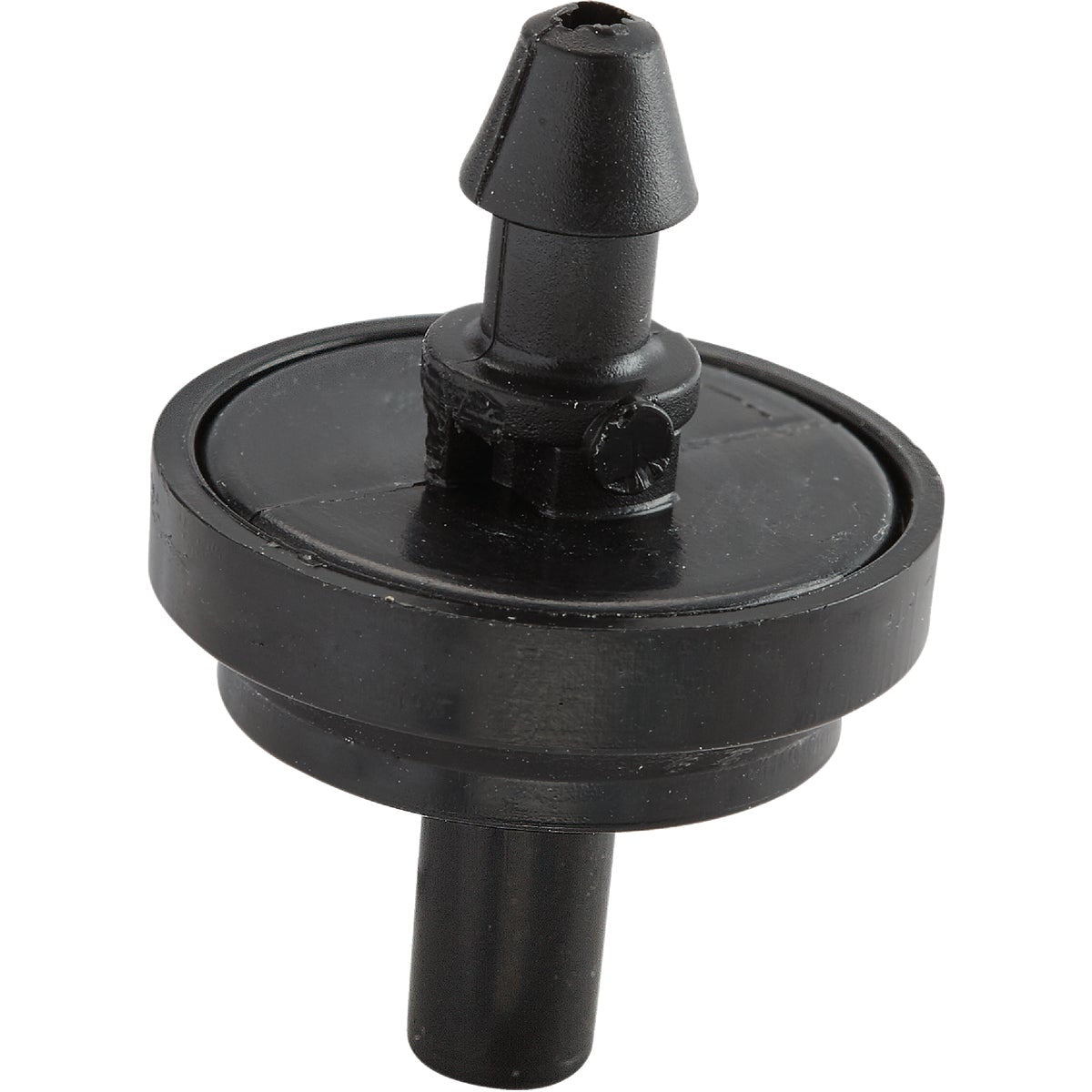 Turbulent flow pressure compensating drippers. Each individual dripper maintains a constant flow rate. Inlet pressures range from 15 to 40 psi (pounds per square inch). These drippers can be used at the end of 1/4 In. tubing feeders or inserted directly into supply hose. Supply hose may be buried and the water ported up to the ground surface with a length of 1/4 In. tubing. Use 1/2 (gallons per hour) GPH for heavy (clay) soil, 1 GPH for medium (loam) soil, and 2 GPH for light (sandy) soil.