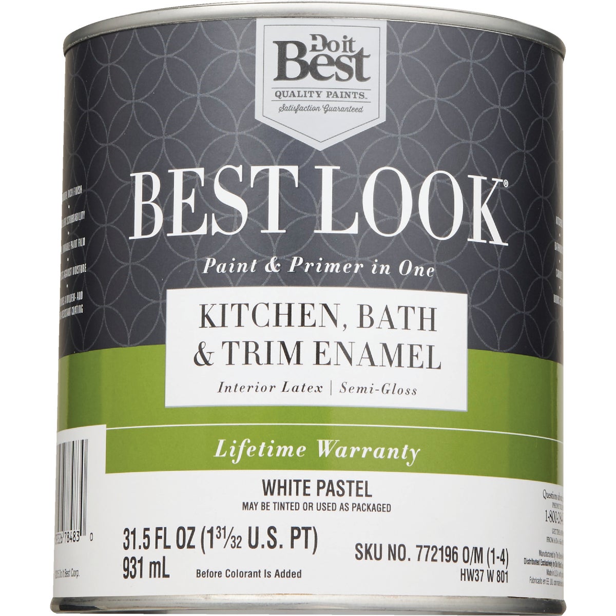 Best Look Latex Paint & Primer In One Kitchen Bath & Trim Semi-Gloss Interior Wall Paint, White-Pastel Base, 1 Qt.