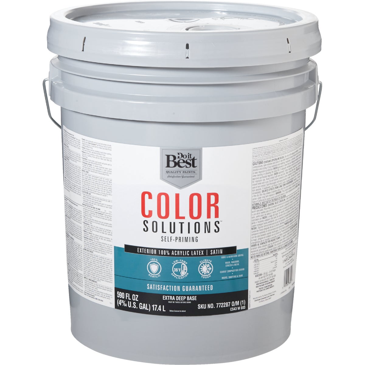 This paint is formulated with 100% acrylic resins for durability and color fast performance. This is for most exterior building surfaces including wood, masonry, stucco, and metal. Tint bases can be mixed to over 1000 custom colors. It is resistant to fading, peeling, and blistering, and covers with 1 coat when applied over properly prepared surfaces. Covers approximately 400 Sq. Ft. per gallon. Recommend priming new wood with Do it Best latex or alkyd exterior wood primer. Dries to the touch in 2 Hrs. and to recoat in 4 to 6 Hrs. Apply with brush, paint pad, or sprayer. Easy to clean up with soap and water. Available in tint bases and packaged colors. Low temperature application down to 35 Deg. F. 15 year warranty. Satisfaction guaranteed.