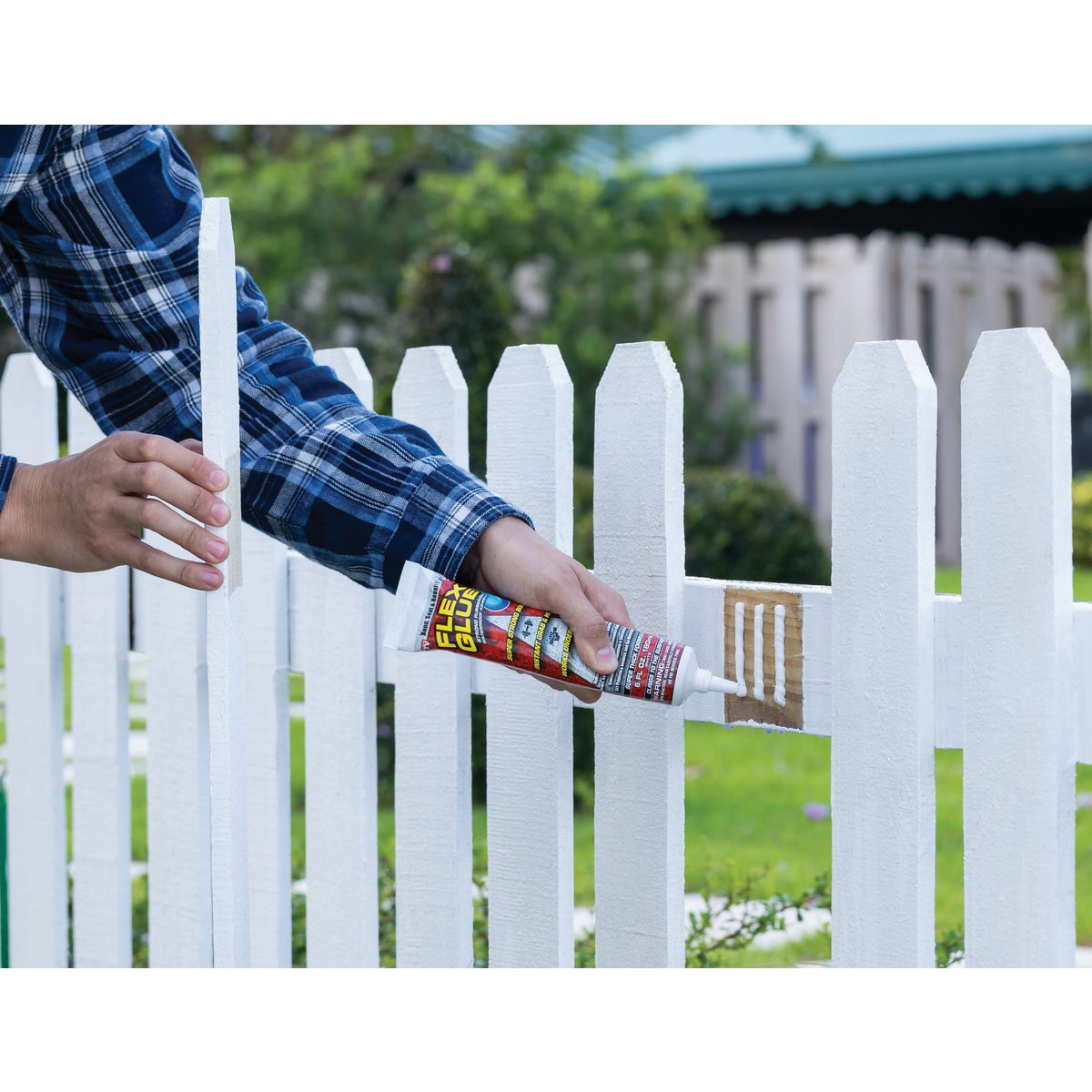 Flex Glue strong rubberized waterproof adhesive instantly bonds, seals, and repairs virtually everything. Super thick adhesive clings to the surface and can be used on dry or wet surfaces - even underwater. Instant Grab holds objects in place, eliminating the need for braces. Cures in 24 to 48 hours and reaches maximum strength in 7 days. Mildew and UV resistant, paintable, solvent free, VOC compliant, low odor, and will not shrink or crack. Will not drip, easily applied to vertical and overhead surfaces. Indoor/outdoor.