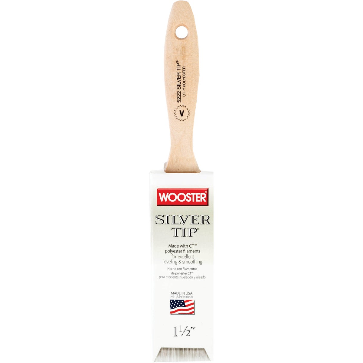 Wooster exclusive CT (Chemically tipped) polyester filaments are what give Silver Tip brushes their luster. These filaments have a full body feel yet they're very thin, flexible, and soft to virtually eliminated brushmarks. The responsiveness and bend recovery of these brushes are perfect for delivering sharp, single pass cuts. Silver Tip brushes provide excellent leveling and smoothing with all paints, but are especially suited for applying enamels to metal, varnish or polyurethane on wood, and thinner water-based coatings. Stainless Steel Ferrule. Hardwood handle.