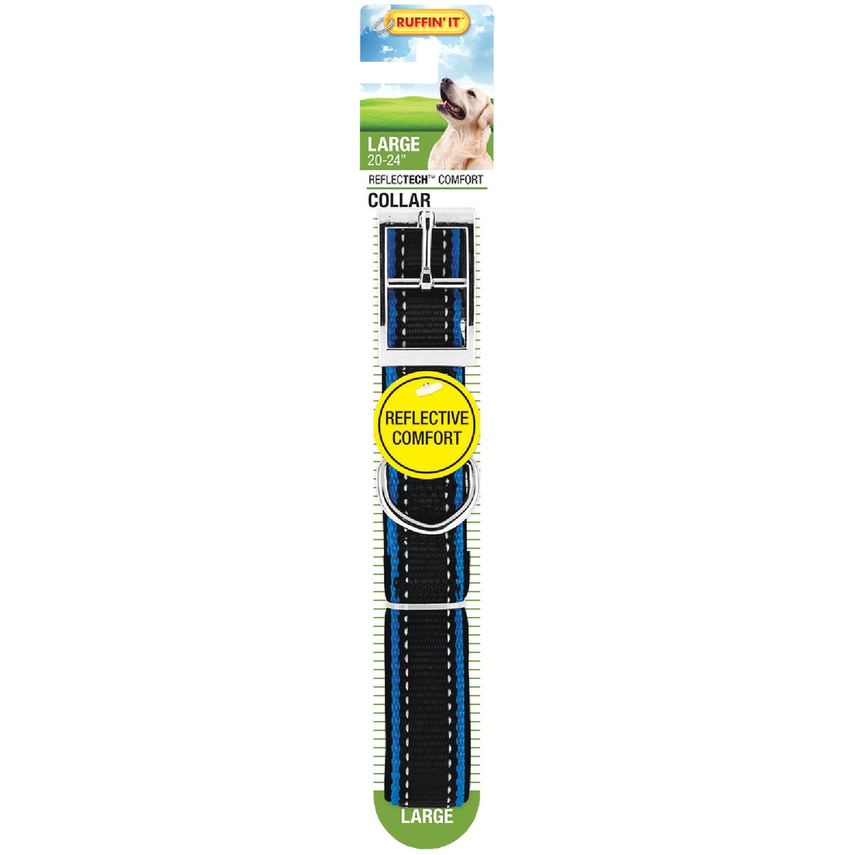 Comfort dog collar combines specially engineered reflective stitching with a layer of thick padding for an advanced level of comfort and safety. Adjustable for an easy and secure fit. Assortment of colors: Black & Bright Green, Black & Blue, Red & Black. Cannot specify color.