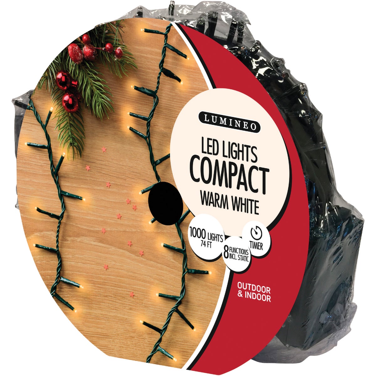 LED (light emitting diode) compact light set. Features 8 functions from constant-on to an array of twinkle and fading functions. Ideal to use indoors or outdoors. Will not tangle and the long lasting LED bulbs are virtually unbreakable. Bulb life is approximately 50,000 hours. Always cool to the touch. UL (Underwriter's Laboratories) approved transformer.