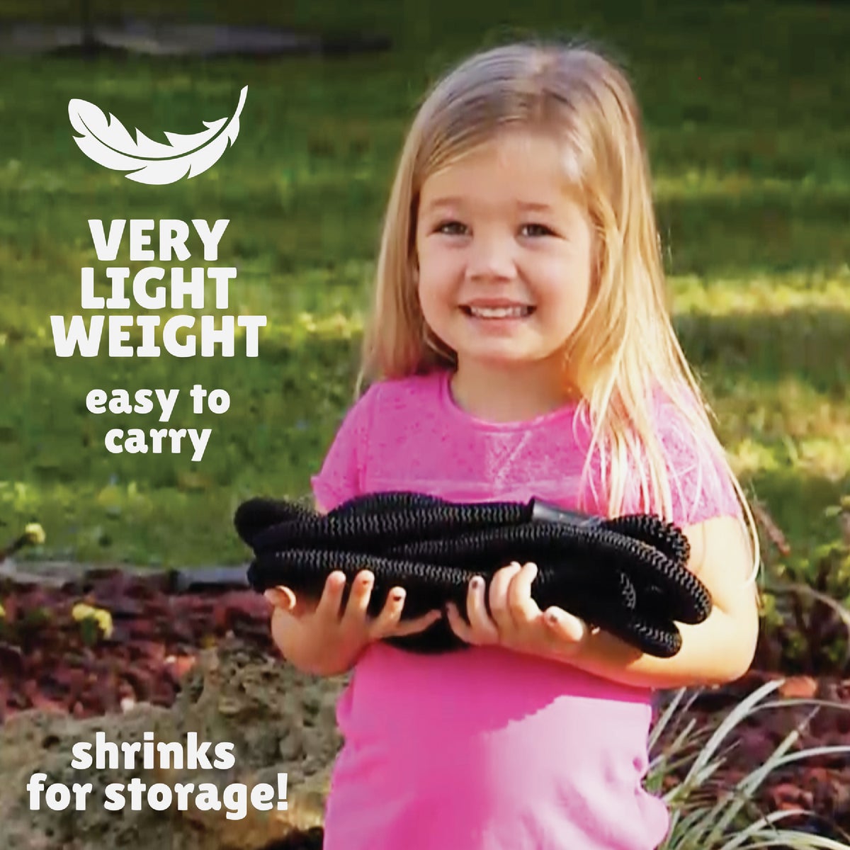 The XHose Pro is made of super strong Dac-5 fiber webbing and it's reinforced with a high-grade, drag-resistant Dac-5 polyester outer layer that's specially woven to make it tougher and stronger than ever. Its solid brass fittings and superior strain relief collar are crush resistant and the hose never kinks, making your yard and garden work hassle-free. Its thick, specially formulated latex inner layer expands to produce more velocity and higher pressure, so it's even more powerful. It automatically expands and then shrinks back to its original size.