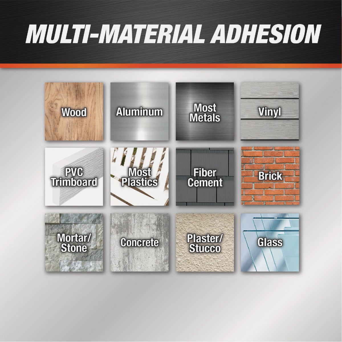 Powered by innovative Weather Max Technology for long-lasting, All Weather Protection. This premium latex formulation provides exceptional UV, mold, mildew and algae resistance, as well as a durable, 100% waterproof seal that stands up to the elements. It stays permanently flexible to endure expansion and contraction caused by sun, heat, cold, wind and rain. Ideal for sealing for installation, weatherization and painting applications on windows, doors, siding, trim, fascia, flashing, and pipes and vents. Adheres to vinyl, aluminum, metal, glass, wood, cedar, concrete and masonry and more.