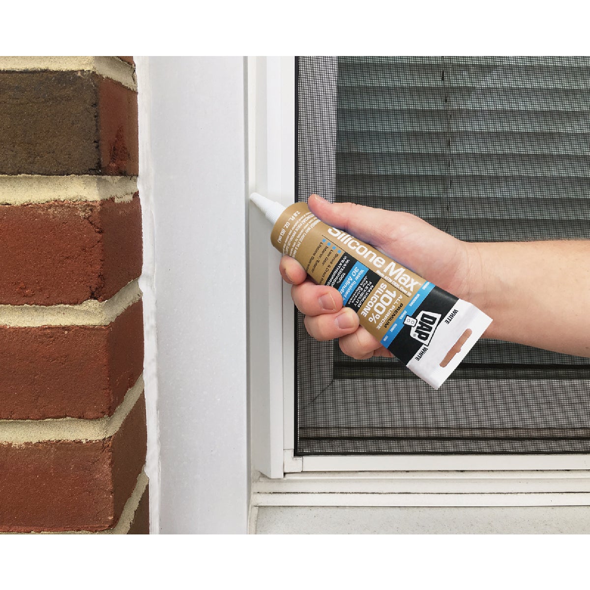 DAP Silicone Max Premium All Purpose 100% Silicone Sealant provides maximum flexibility and adhesion to withstand extreme expansion and contraction caused by temperature and weather fluctuations. DAP Silicone Max has twice the joint movement capability of many other sealants so it won't crack or shrink, providing a durable, 100% waterproof and weatherproof seal. It is rain and water ready in just 30 minutes. Ideal for a wide variety of applications such as sealing around windows, doors, siding and trim.