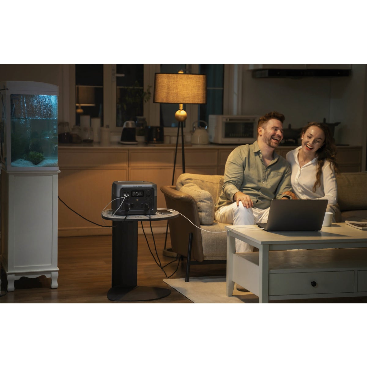 River 2MAX portable power station. Features upgraded long-lasting LFP battery chemistry at its core, meaning you can charge and empty RIVER 2 over 3000 times. That is essentially 10 years of everyday use and 6X longer than the industry average. With LFP cells, RIVER 2 Max is safe, durable, and highly efficient - even in warm temperatures. Charge 0 to 100% in only 60 minutes. Safe and reliable for 10 years of use. Charge without limits. Run up to 80% of essential appliances. Grab-and-go-power. Essential home backup with a 30ms switch-over mode. Power at your fingertips.
