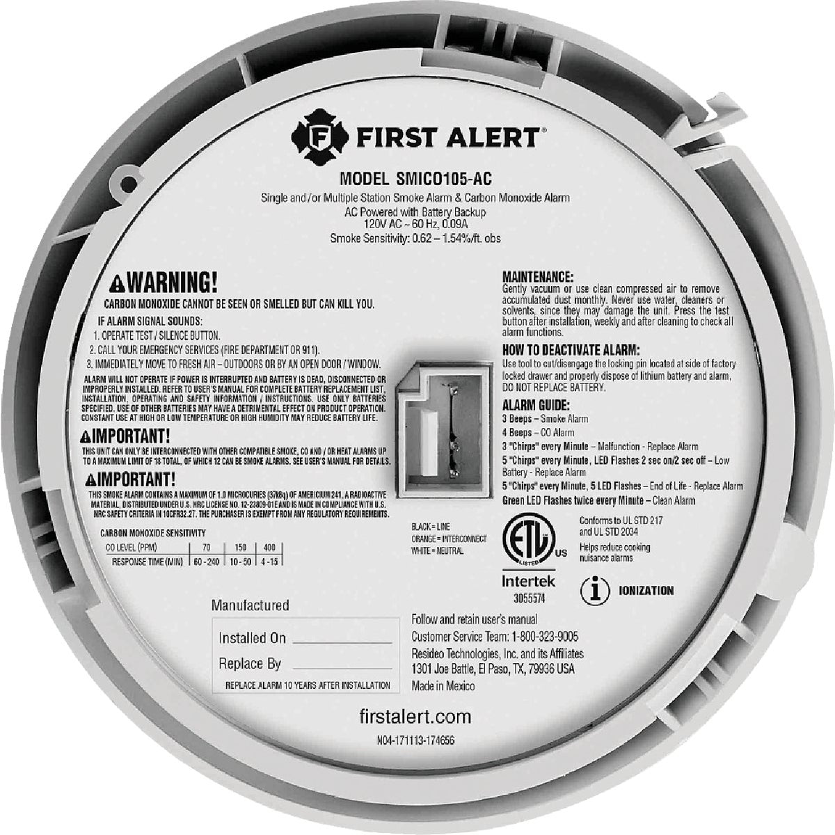 Install convenient 2-in-1 protection against both smoke and carbon monoxide with the SMICO105-AC interconnect hardwire combination smoke and carbon monoxide alarm. Includes 10-year battery backup. Meets industry standards and can interconnect with other compatible alarms to create a whole home safety network to help provide an early warning. Includes easy adapters to replace old hardwired alarm, no rewiring is needed. Features Precision Detection technology which provides early warning advanced protection along with a reduction in cooking nuisance alerts.