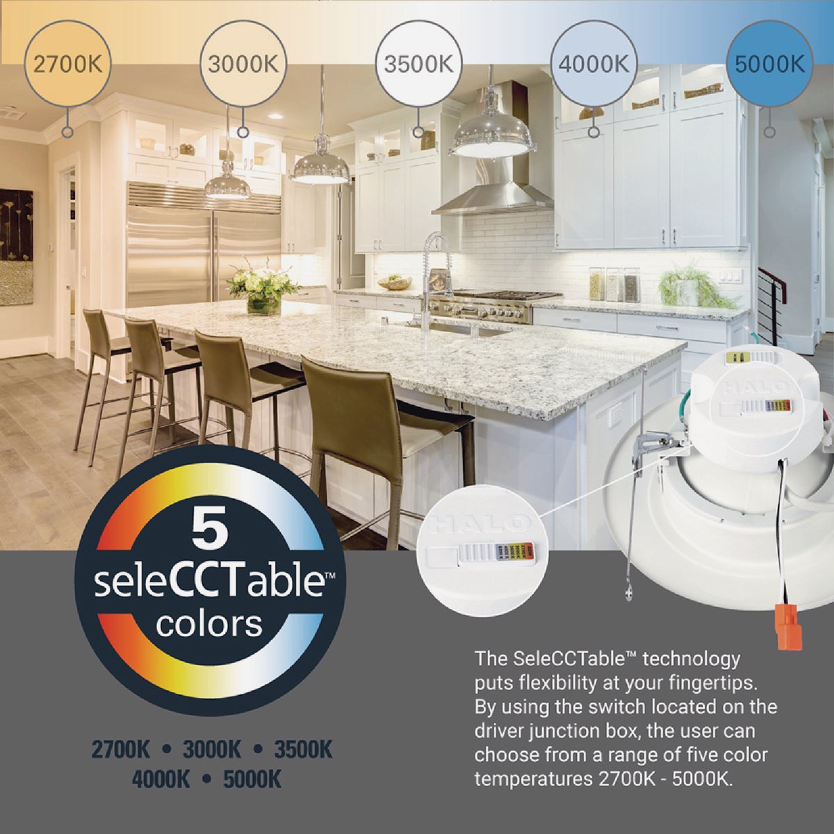 Halo 5/6 In. Selectable CCT Integrated LED Recessed Light Trim, 600 Lm./1000 Lm.