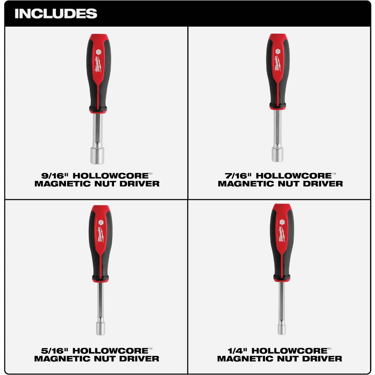 Milwaukee Standard HollowCore Magnetic Nut Driver Set (4-Piece)