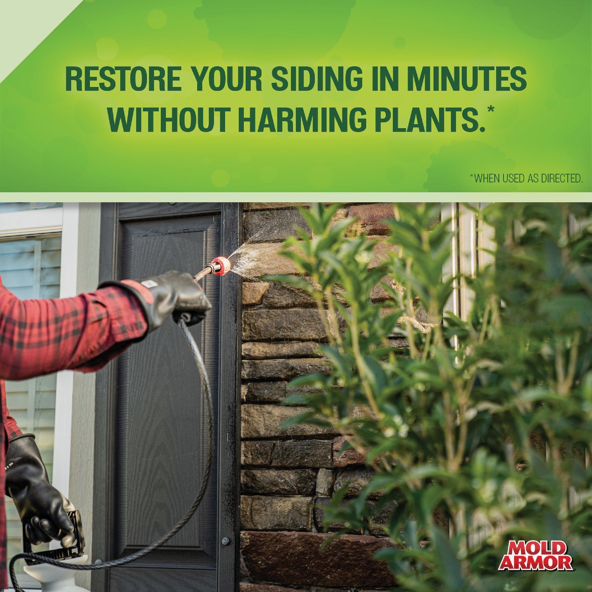 Mold Armor E-Z House Wash kills mold and mildew, and cleans your home's exterior in minutes. The EPA-registered, ready to use formula combines with a powerful sprayer to remove stains without scrubbing. The power of Microban Foaming Technology clings to exterior surfaces for an even better clean. Spray on, wait 10 minutes, wash off. Cleans up to 4,500 Sq. Ft.