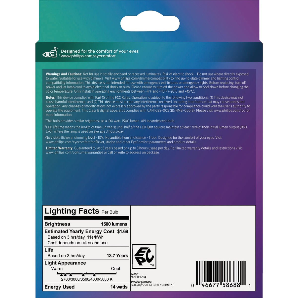 Philips 100W Equivalent 5 CCT A19 Medium Dimmable LED Light Bulb (2-Pack)