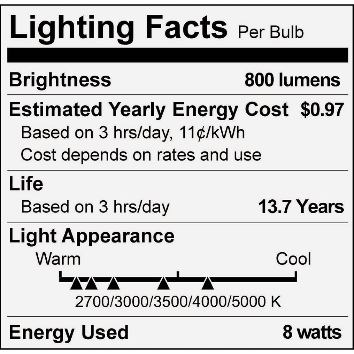 Color temperature selectable LED light bulb. With a quick flip of the switch on the bulb, you can choose between five shades of white in one bulb - soft white, bright white, neutral white, cool white, daylight. Features Eye Comfort technology designed for the comfort of your eyes, meeting strict criteria for EyeComfort, a standard developed to measure key factors that impact the comfort of your eyes. Energy saving as well as beautiful - save up to 80% on your energy usage.