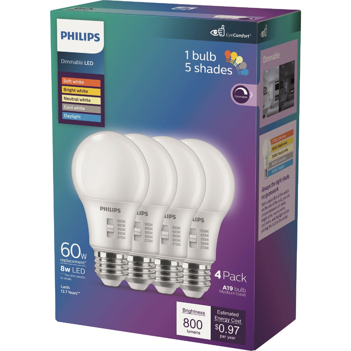 Philips 60W Equivalent 5 CCT A19 Medium Dimmable LED Light Bulb (4-Pack)