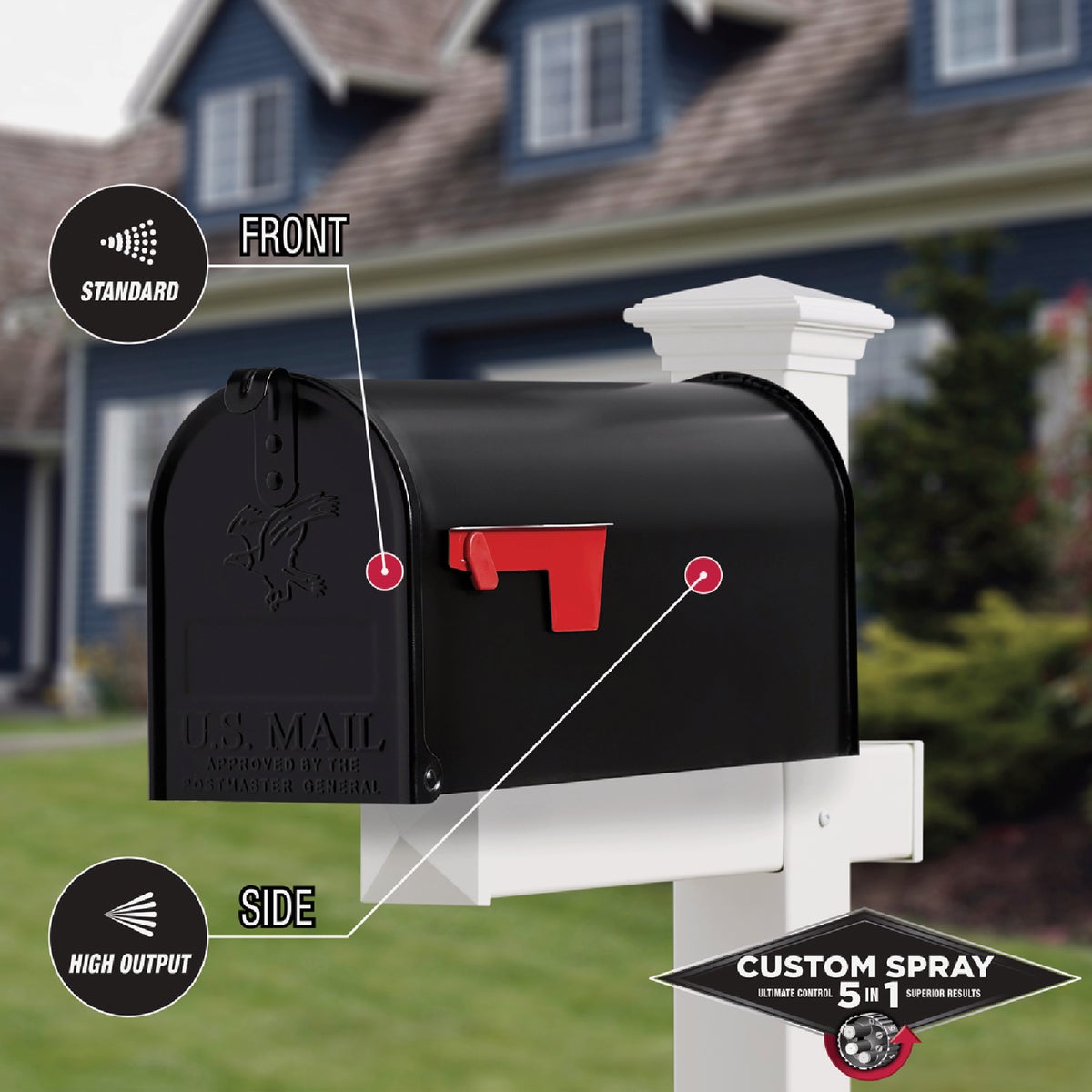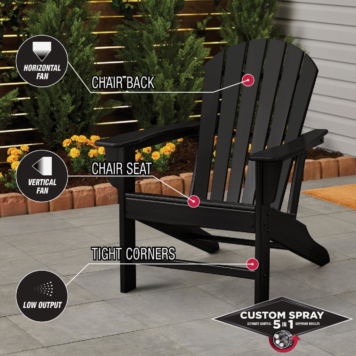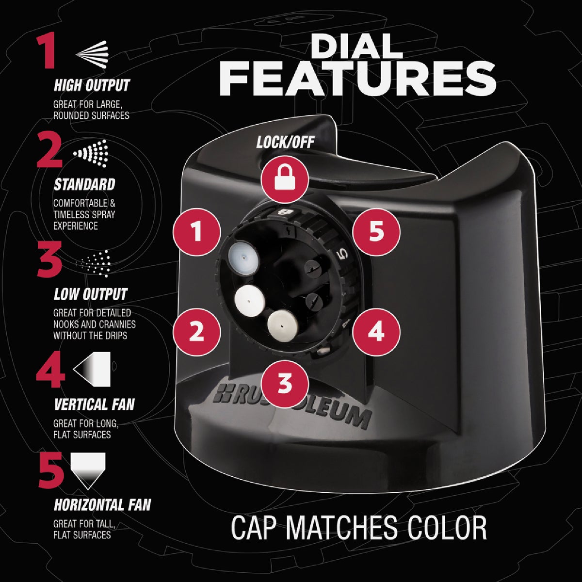 Rust-Oleum Stops Rust Protective Enamel Spray Paint with Custom Spray 5-in-1 features five different spray patterns for ultimate control. High output spray for large curved surfaces, standard for a traditional spray pattern, low output for painting curves and edges without runs or drips, vertical fan for wide surfaces and horizontal fan for tall surfaces. This fast dry, oil-based coating provides outstanding protection from rust, corrosion, fading, chipping and other abrasions. For use on interior and exterior metal/wood projects.