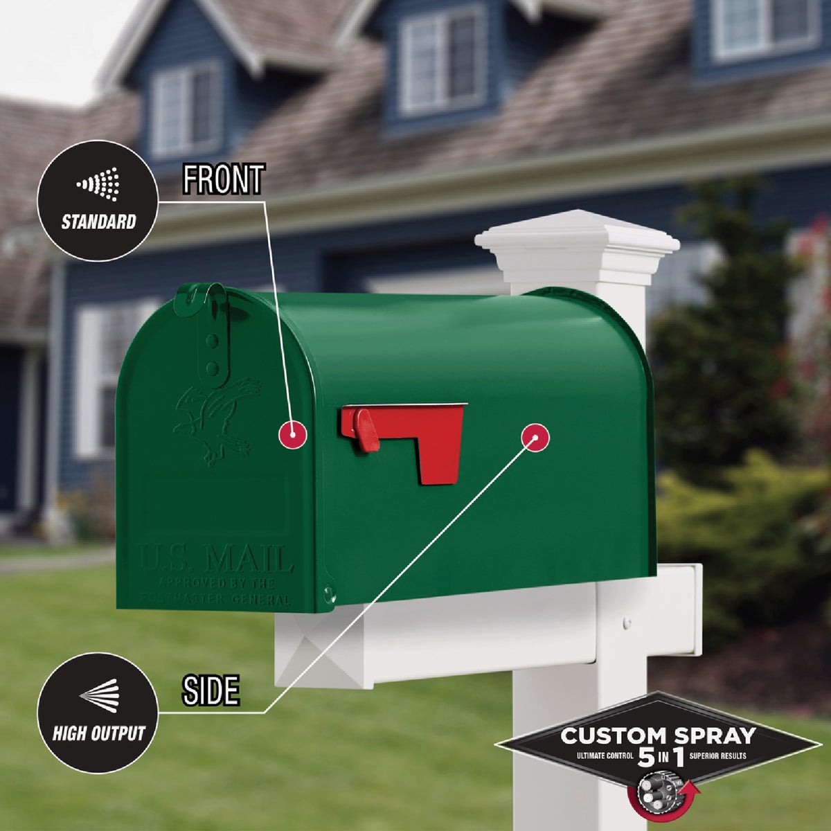 Rust-Oleum Stops Rust Protective Enamel Spray Paint with Custom Spray 5-in-1 features five different spray patterns for ultimate control. High output spray for large curved surfaces, standard for a traditional spray pattern, low output for painting curves and edges without runs or drips, vertical fan for wide surfaces and horizontal fan for tall surfaces. This fast dry, oil-based coating provides outstanding protection from rust, corrosion, fading, chipping and other abrasions. For use on interior and exterior metal/wood projects.
