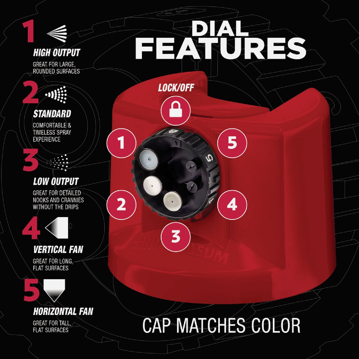 Rust-Oleum Stops Rust Protective Enamel Spray Paint with Custom Spray 5-in-1 features five different spray patterns for ultimate control. High output spray for large curved surfaces, standard for a traditional spray pattern, low output for painting curves and edges without runs or drips, vertical fan for wide surfaces and horizontal fan for tall surfaces. This fast dry, oil-based coating provides outstanding protection from rust, corrosion, fading, chipping and other abrasions. For use on interior and exterior metal/wood projects.