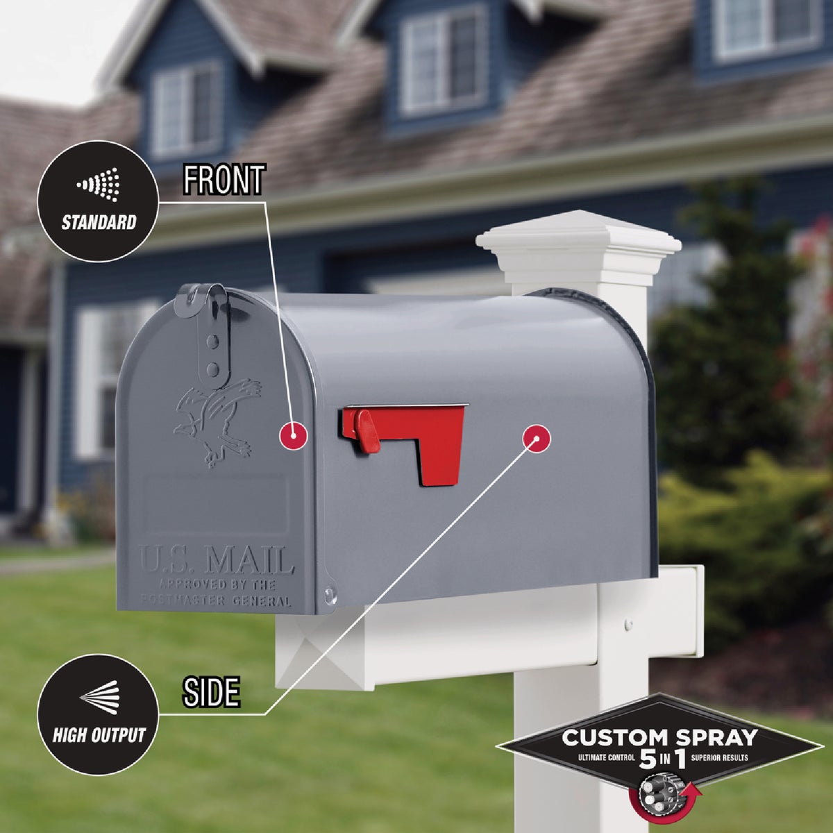Rust-Oleum Stops Rust Protective Enamel Spray Paint with Custom Spray 5-in-1 features five different spray patterns for ultimate control. High output spray for large curved surfaces, standard for a traditional spray pattern, low output for painting curves and edges without runs or drips, vertical fan for wide surfaces and horizontal fan for tall surfaces. This fast dry, oil-based coating provides outstanding protection from rust, corrosion, fading, chipping and other abrasions. For use on interior and exterior metal/wood projects.