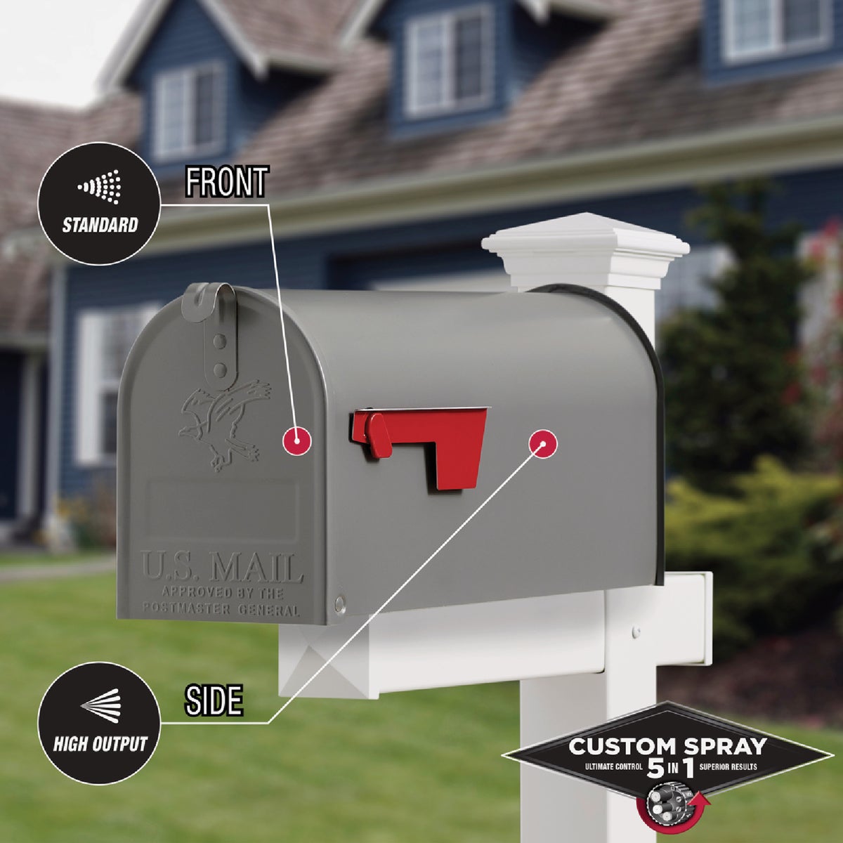 Rust-Oleum Stops Rust Protective Enamel Spray Paint with Custom Spray 5-in-1 features five different spray patterns for ultimate control. High output spray for large curved surfaces, standard for a traditional spray pattern, low output for painting curves and edges without runs or drips, vertical fan for wide surfaces and horizontal fan for tall surfaces. This fast dry, oil-based coating provides outstanding protection from rust, corrosion, fading, chipping and other abrasions. For use on interior and exterior metal/wood projects.