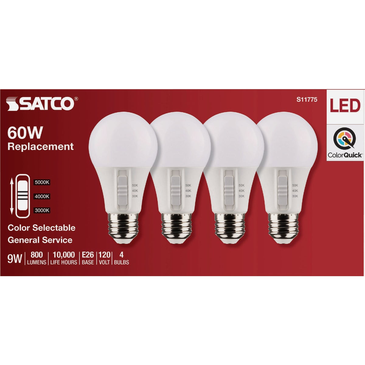 Image of Satco 60W Equivalent 3CCT-Selectable A19 Traditional LED Light Bulb (4-Pack)