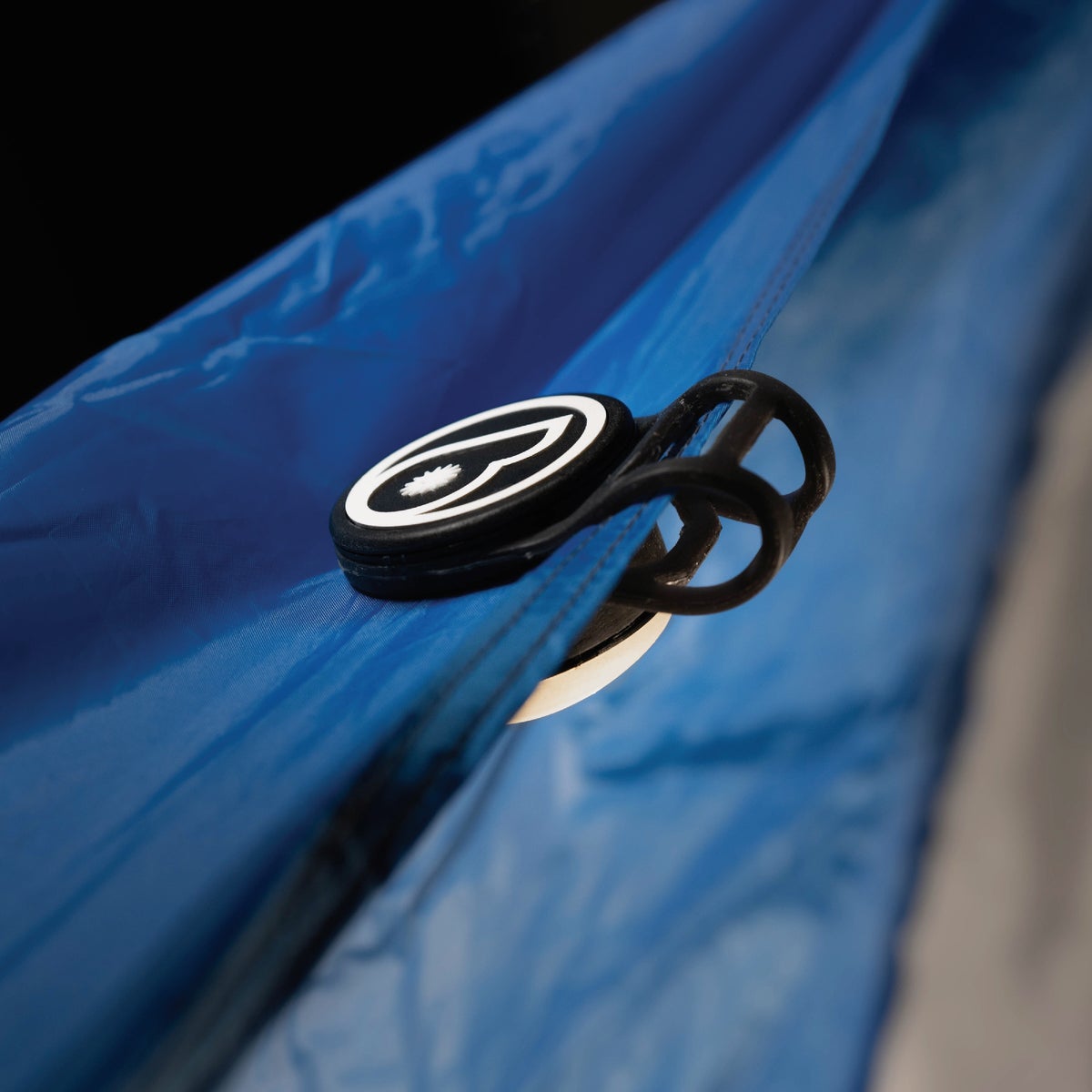 Sitebrightz LED camping light is a warm white LED magnetic clip-on light to illuminate your campsite. It has 6 magnets (3 on each side) to securely clip on to a fabric edge of your tent or canopy. Features 3 brightness settings - low at 25%, medium at 50%, high at 100%. The battery is micro USB rechargeable. Sitebrightz is weather resistant with a silicon body so you can leave it clipped on, rain or shine. Weather resistant. Up to 35 hours of glow per charge.