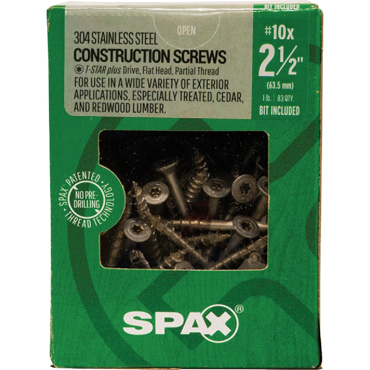 SPAX 10 x 2-1/2 In. Flat Head T-20+ 304 Stainless Steel (Exterior Rated) 1 Lb. (83-Count)
