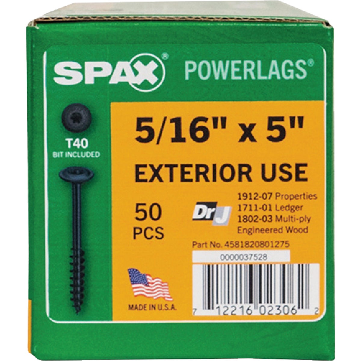 SPAX 5/16 x 5 In. PowerLag Washer Head T-40 HCR (Exterior Rated) Lag Screw Contractor Pax (50-Count)