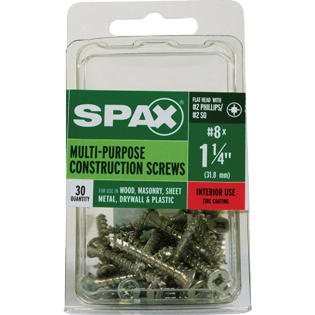 SPAX 8 x 1-1/4 In. Flat Head Unidrive (Combo Drive) Zinc (Interior) Wood Screw (30-Count)