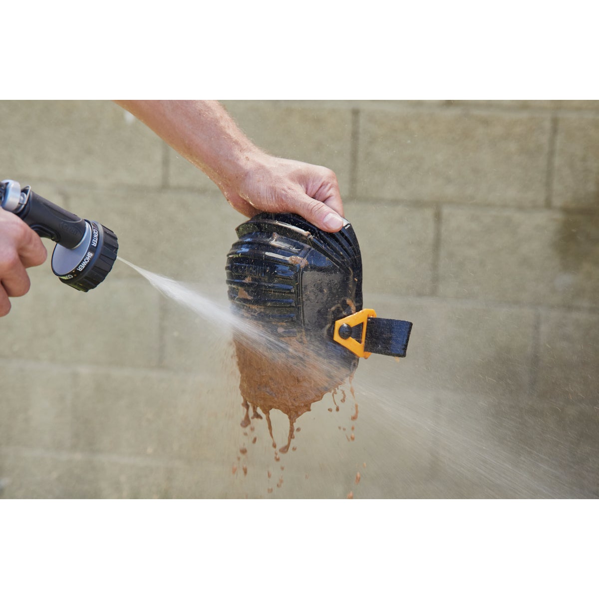 The ToughBuilt Waterproof Knee Pads are the versatile solution for wet and dirty jobs, from concrete to gardening. Pliable outer shell protects the knee on rough terrain while preventing scratches on the most delicate surfaces. Closed cell, high-density foam provides all-day comfort. Flexible accordion construction keeps out debris and maintains comfort while walking. A single elastic strap wraps around the upper calf avoiding painful bunching behind the knee. Easily cleaned off with water after every job.