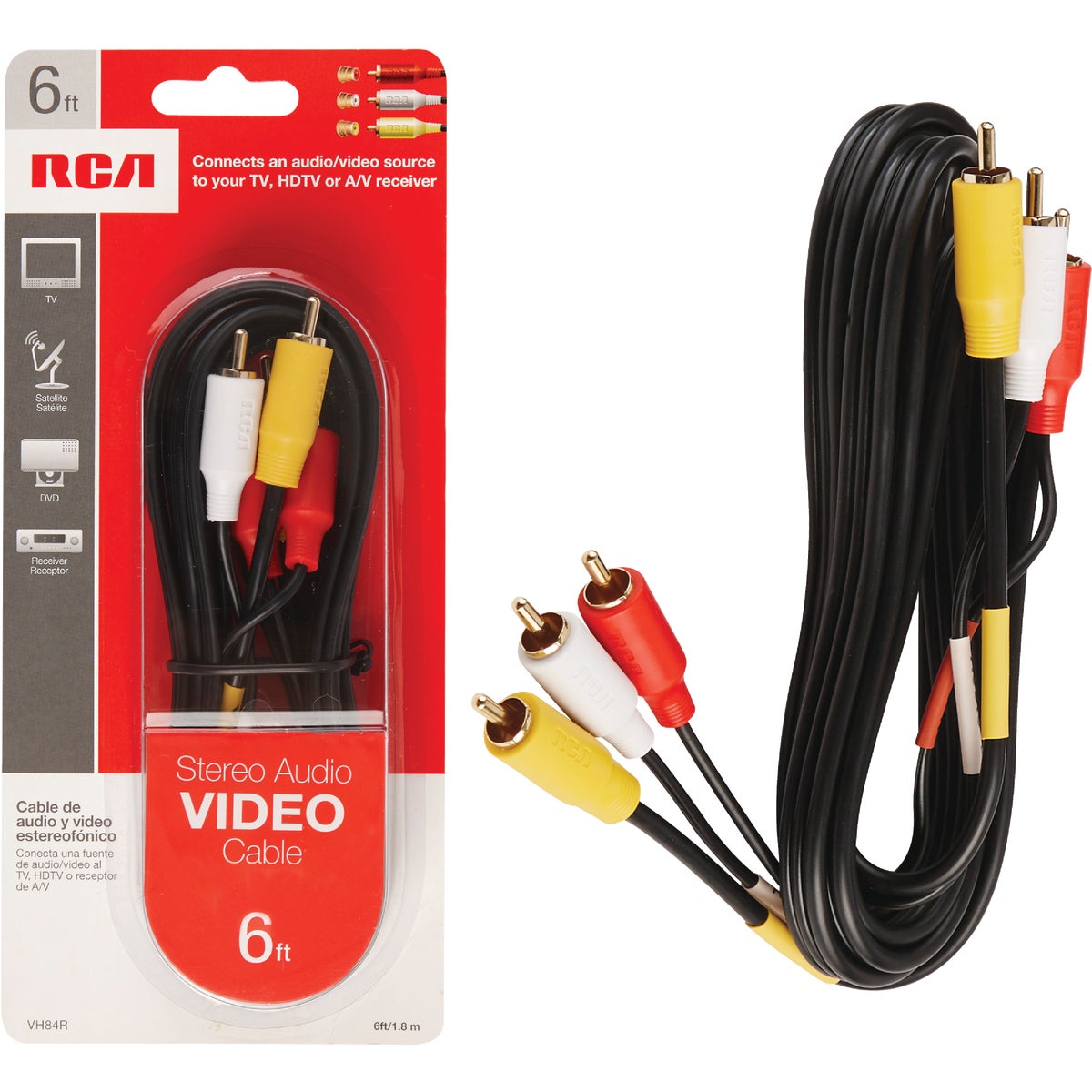 Ideal for use as a dubbing cable. 6-foot stereo audio and video cable connects any audio and video components together. It connects RCA type outputs from a component such as satellite or cable box, DVD, VCR, DVR, to another RCA type input of another component. Gold-plated connectors provide corrosion-resistant connection.