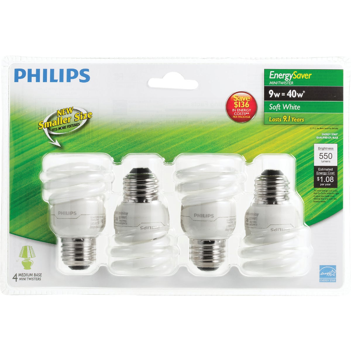 Philips Energy Saver 40W Equivalent Soft White Medium Base T2 Spiral CFL Light Bulb (4-Pack)