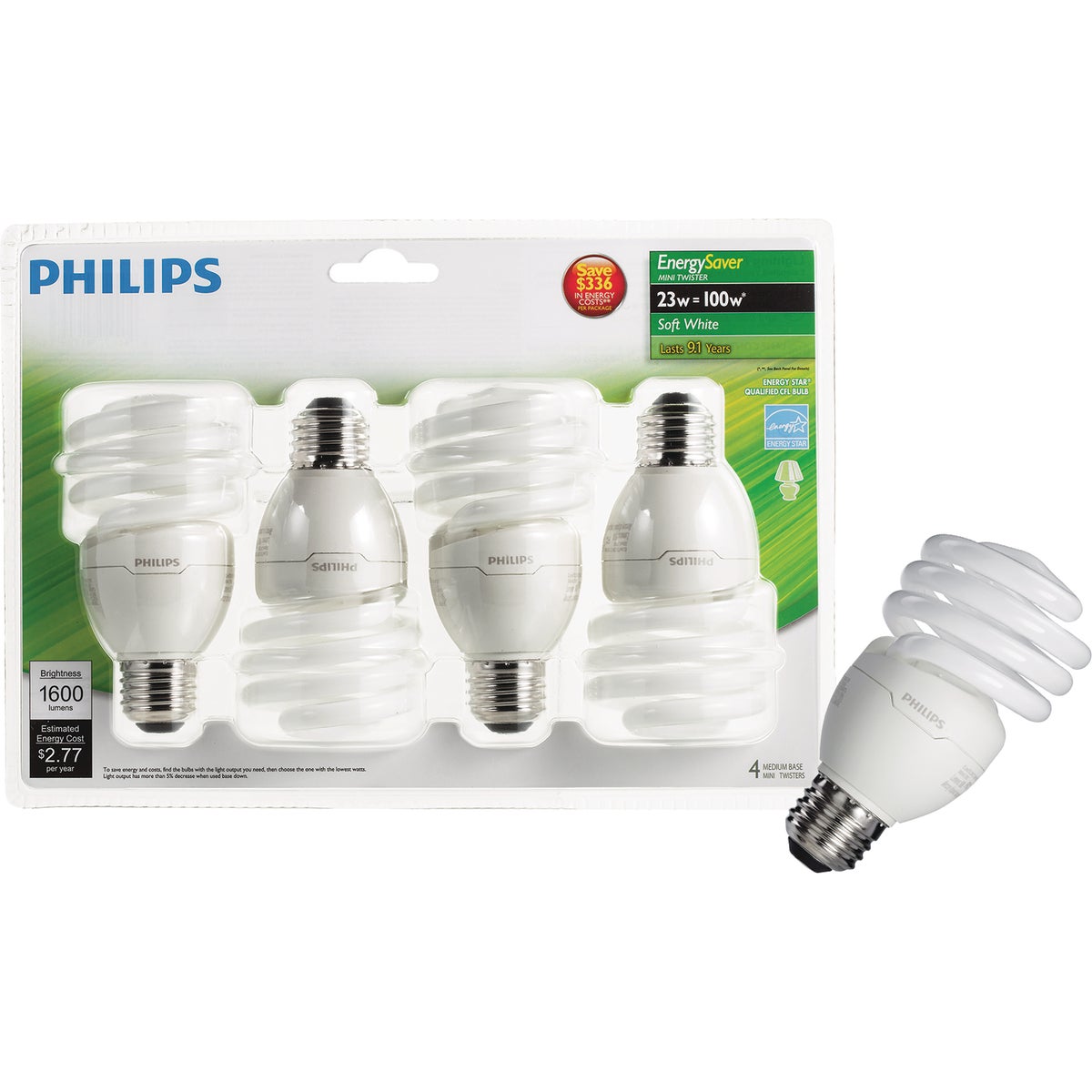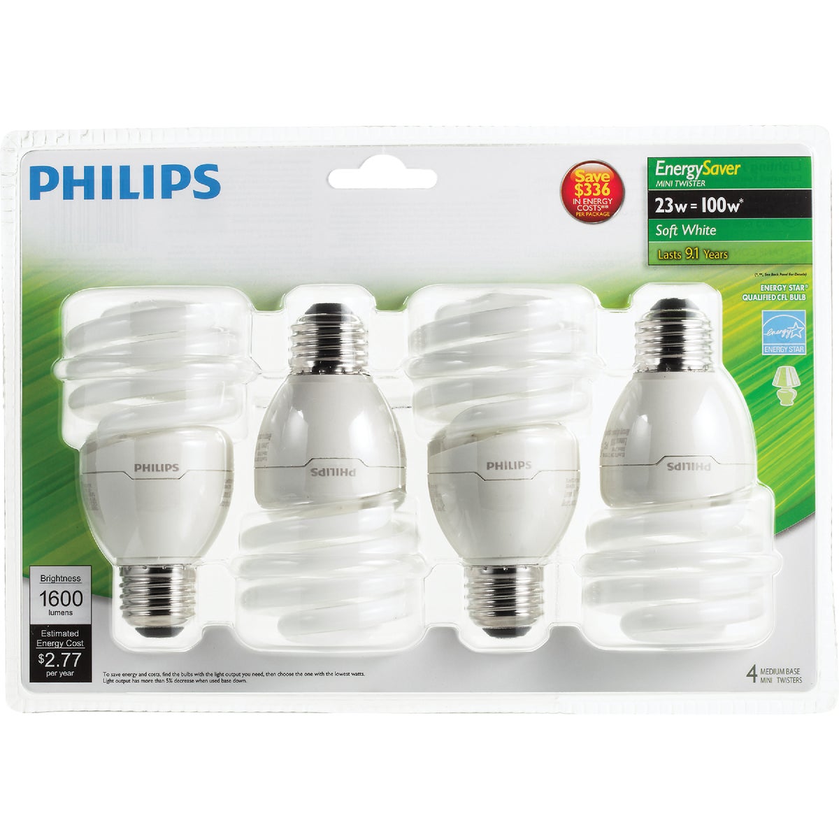 Philips Energy Saver 100W Equivalent Soft White Medium Base T2 Spiral CFL Light Bulb (4-Pack)