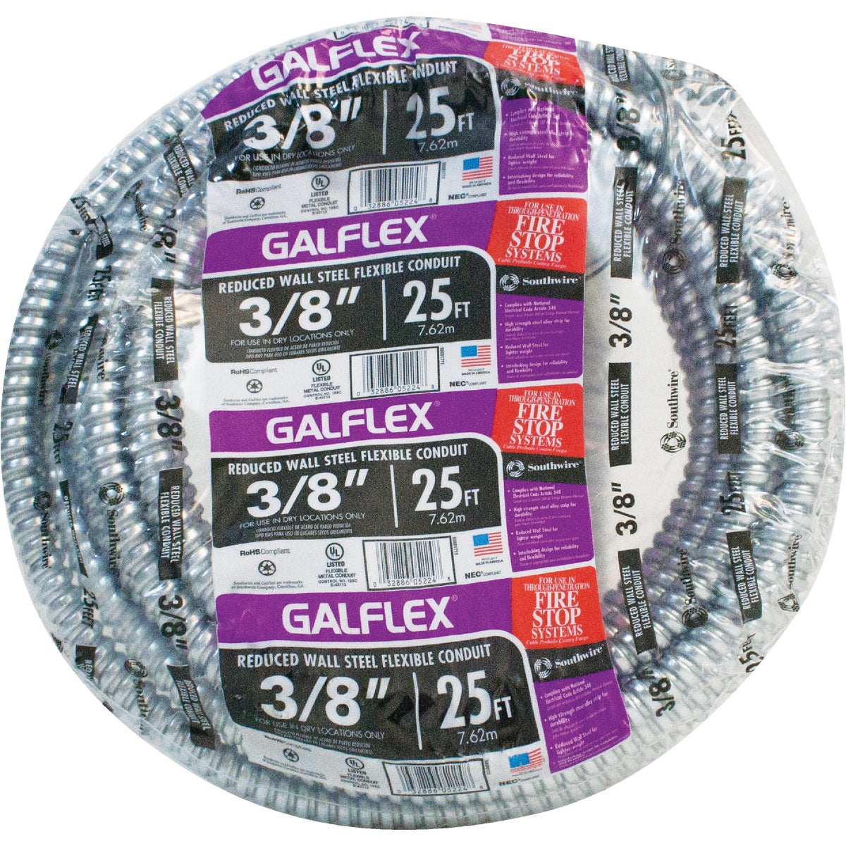 Flexible reduced wall steel jacket conduit. Fits regular armored cable or flexible conduit connectors. Designed for electrical wiring where UL (Underwriter's Laboratories) listing is required. Made from hot dipped galvanized steel with heavy zinc coating. Medium weight conduit. UL listed.