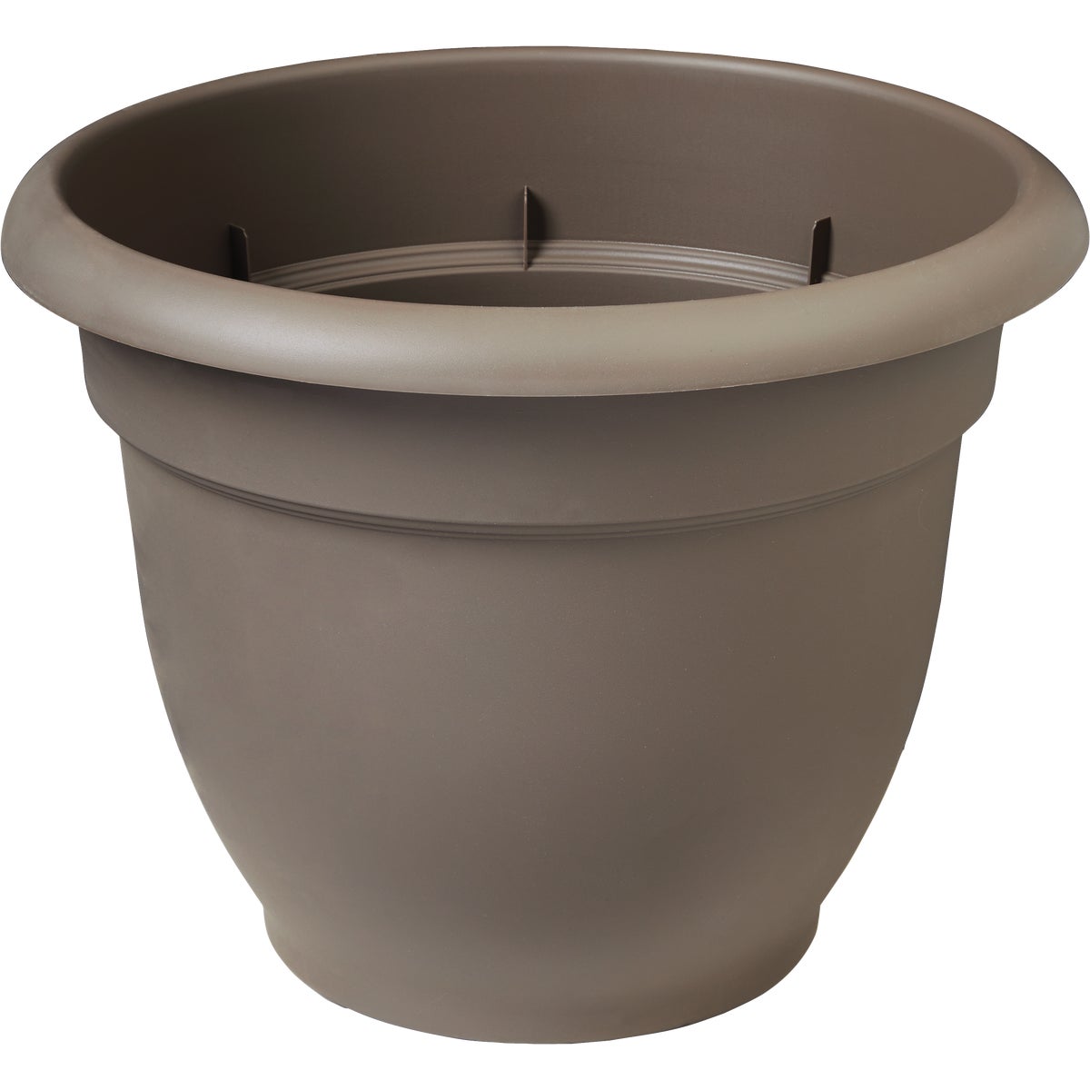 Sturdy, lightweight Ariana planter. Features a self-watering disk, which is an internal drainage reservoir that helps prevent damaging root rot and allows oxygen to easily access plant roots. Offers an economical way to decorate the home interior or exterior. Constructed with high quality color pigments and ultra violet additives for all-weather durability. An ideal alternative to clay or ceramic pots. 100% recyclable.