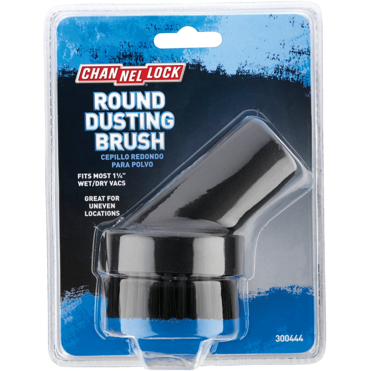 Durable round plastic vacuum dusting brush. Compatible with most 1-1/4 In. wet/dry vacuums. Bristles help to pick up debris and dirt. Designed to clean on uneven surfaces.