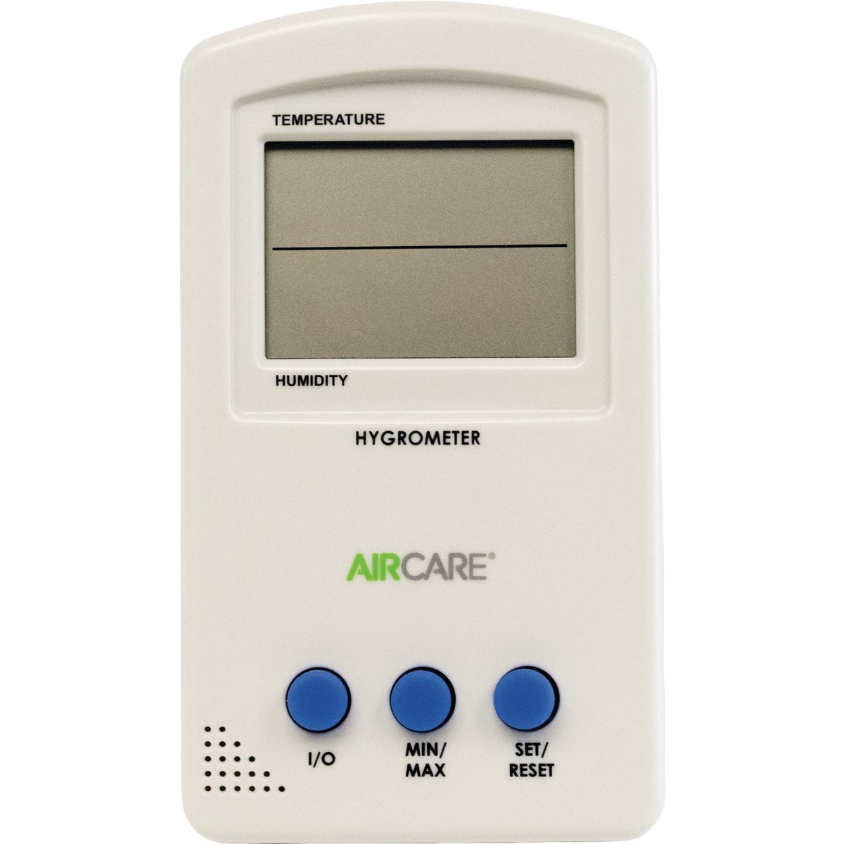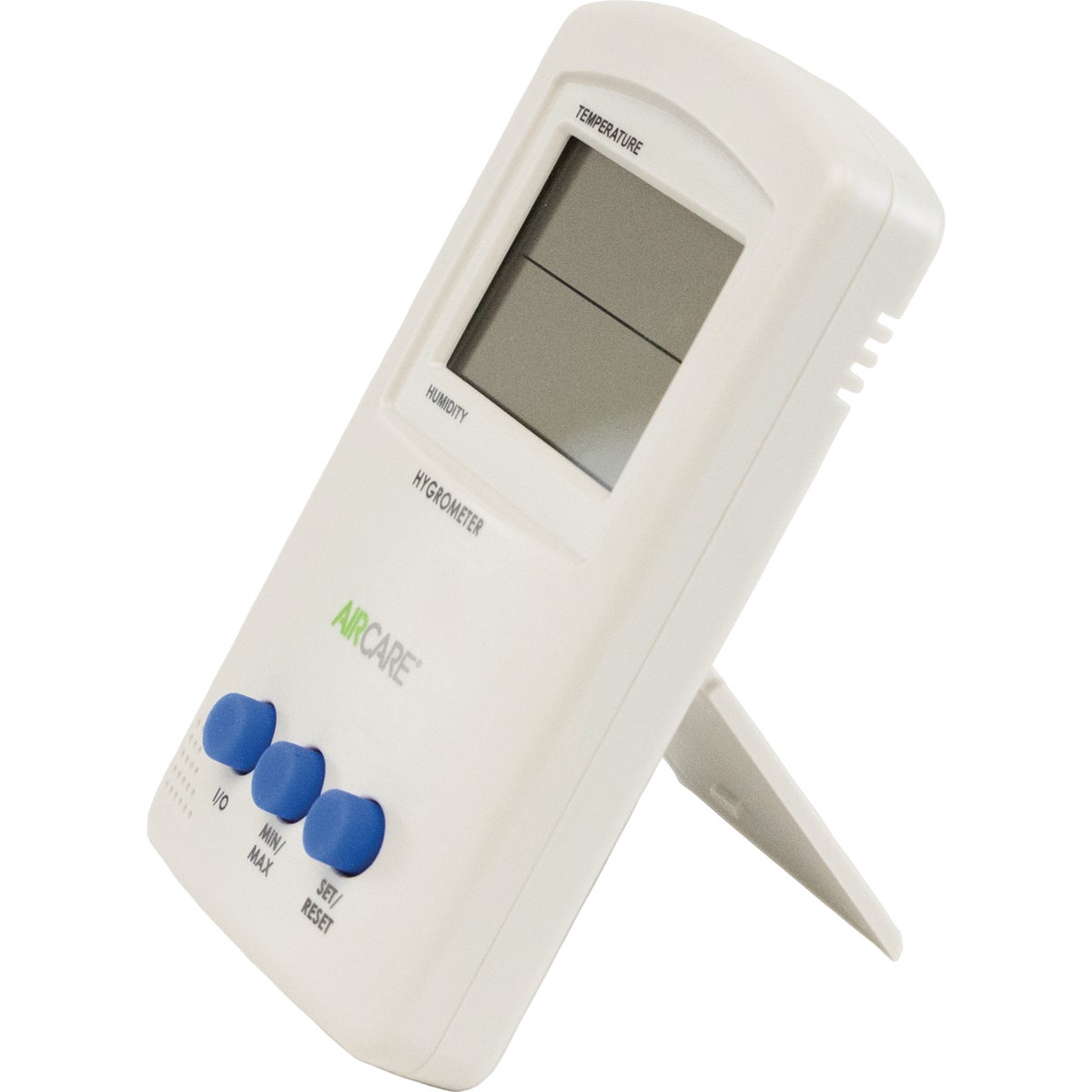 Hygrometer with easy-to-read digital display for tabletop or wall mount. Measures temperatures between -50 deg (degrees) F (Fahrenheit) and 106 deg F. Measures relative humidity between 20% and 90%. 1 AAA battery included. 2.5" W x 4.25" H x 0.66" D. Made of polystyrene. UL (Underwriter's Laboratories) listed.