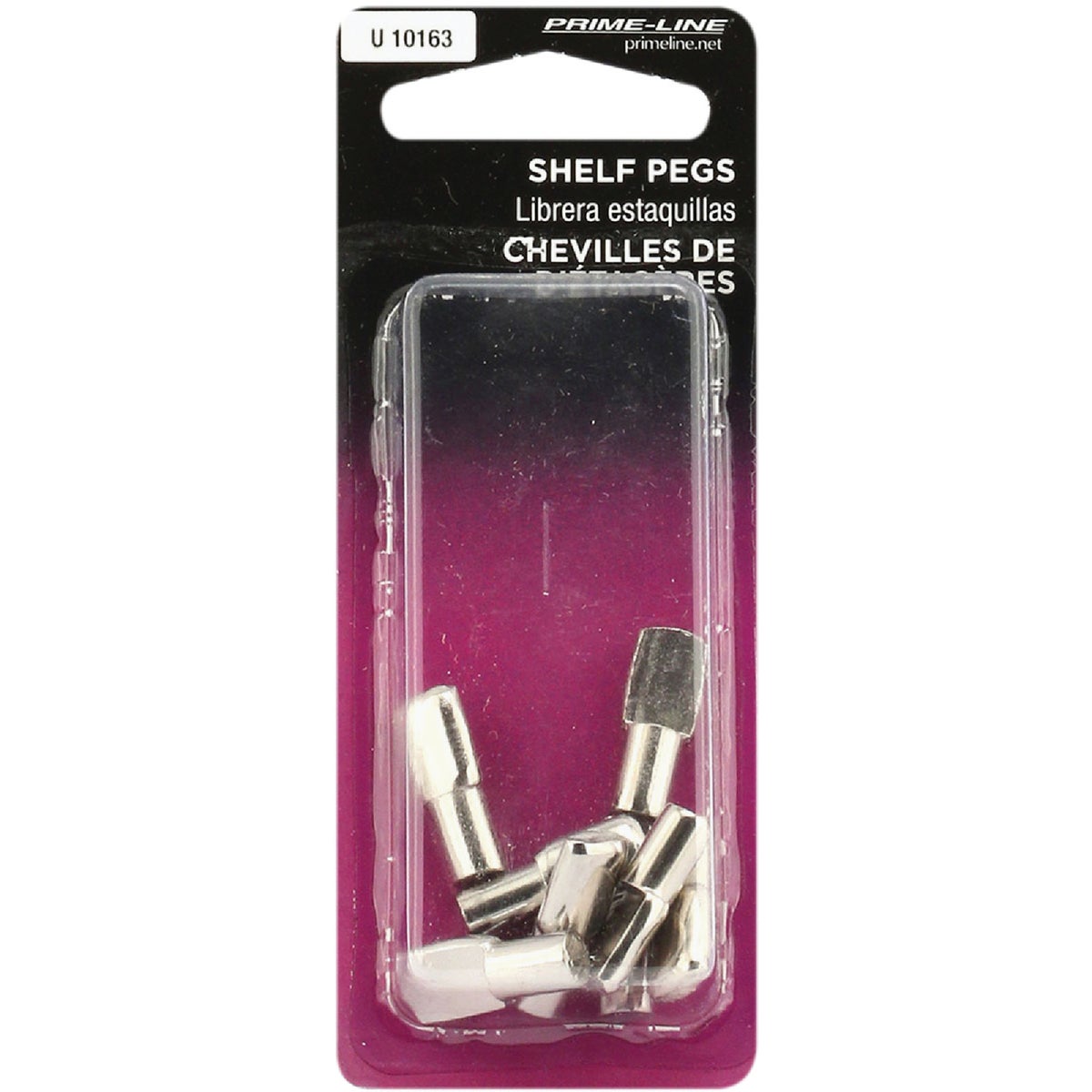 Metal 1/4 In. spoon style support pegs frequently used in stereo and storage cabinets with glass shelving. 8 per card.
