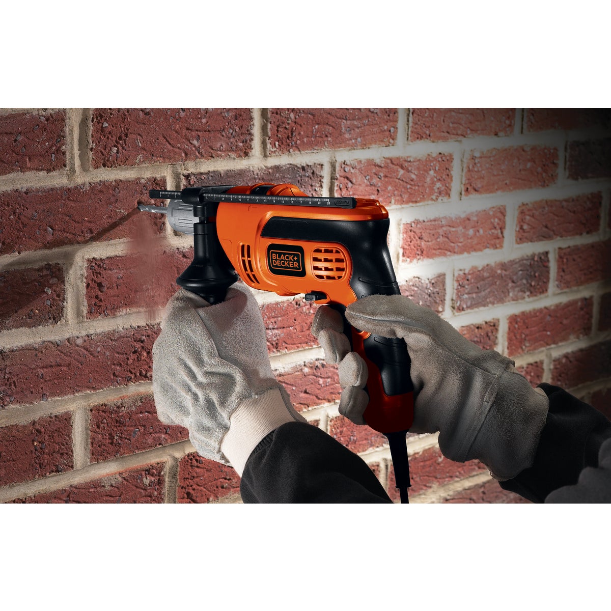 With up to 48,000 beats per minute, hammer drill delivers power to drill into stone, brick, masonry, and materials that a standard drill can't get through. The single-sleeved chuck allows for easy bit changes. Work with maximum comfort and grip with the adaptable 3-position side handle. Switch from standard drilling to hammer function with a click when needed to punch through tough materials from wood to stone.
