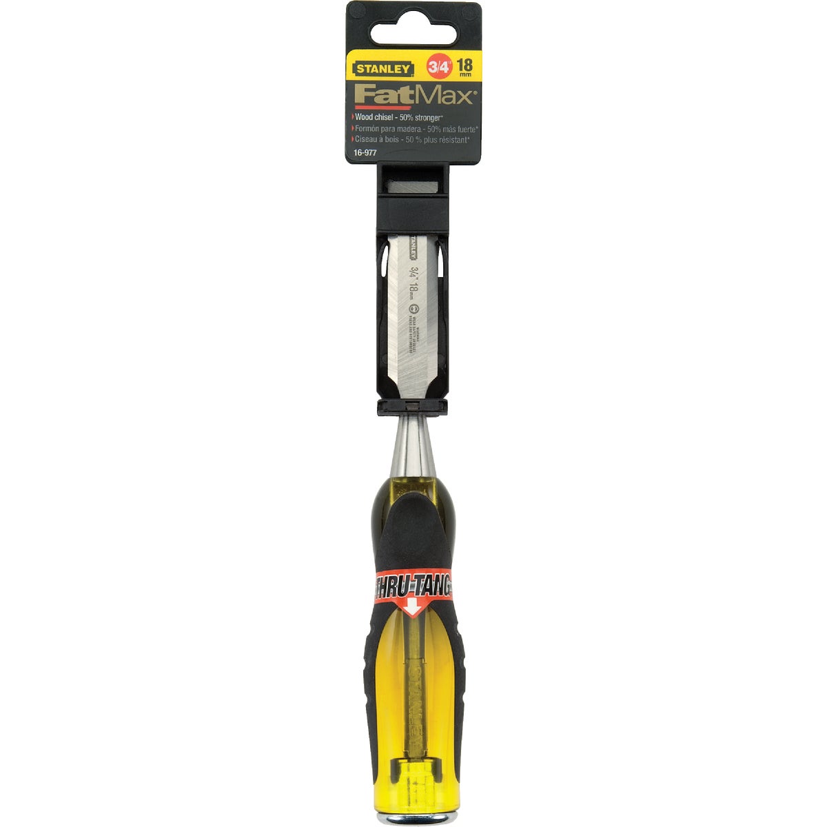 Hardened and tempered high chrome carbon alloy steel blade for edge retention. Blade edge honed, ready for use. Descriptive etch mark displaying blade size. Precision ground blade, for accurate sizes. Patented, ergonomically designed, break-resistant, bi-material grip handle. Steel striking cap for use with steel headed hammer. Reusable, try-me hang tag packaging with blade guard protection in store; screw rack wall storage at home. Overall length 9".