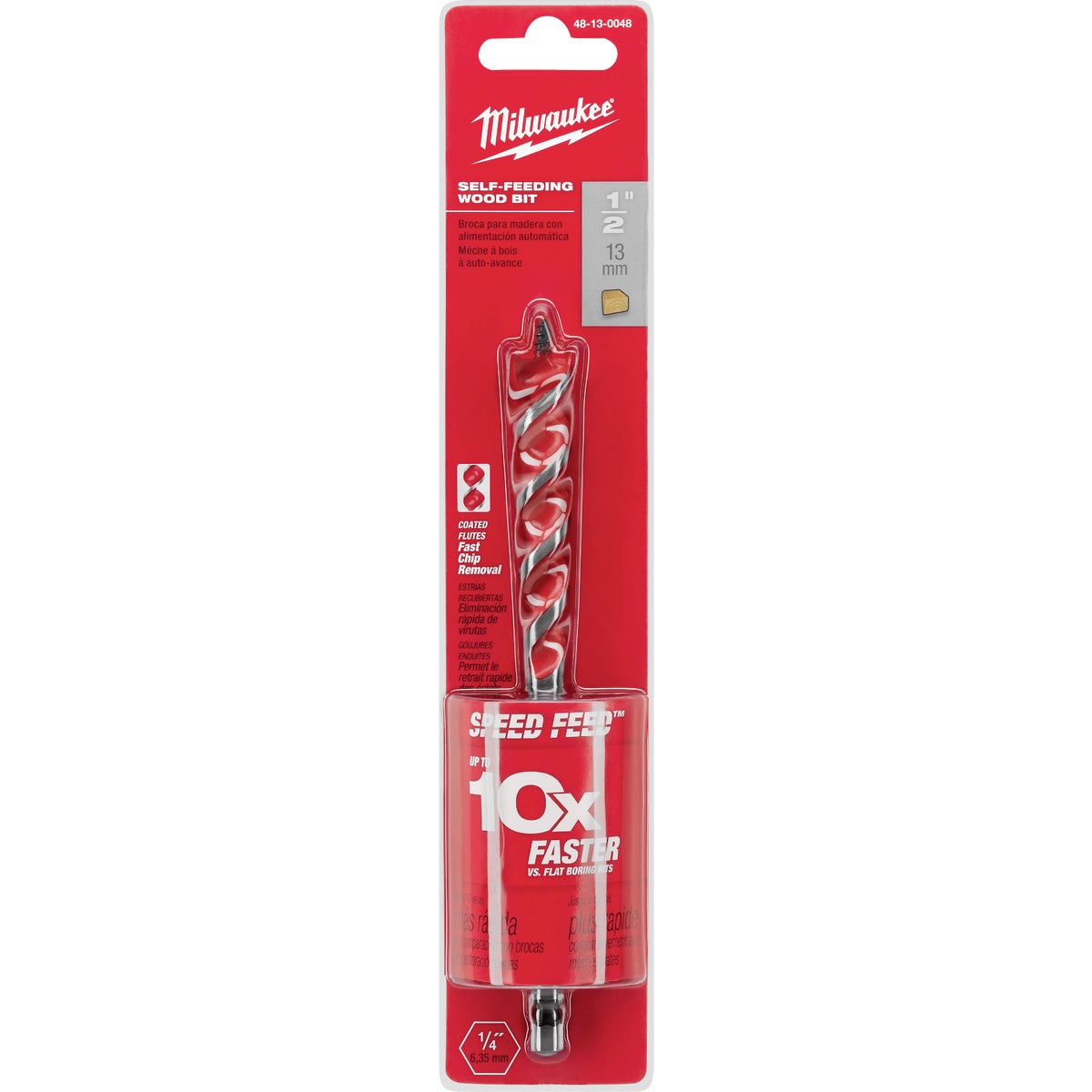 Speed Feed self-feeding wood bits are made for drilling fast holes in clean wood. The double wing spurs cut clean holes for feeding wire or bolts through, and the feed screw and dual cutting edges provide up to 10 times faster drilling versus flat boring bits. Flutes are coated for fast chip removal. 1/4" power groove shank fits all 1/4" extensions.