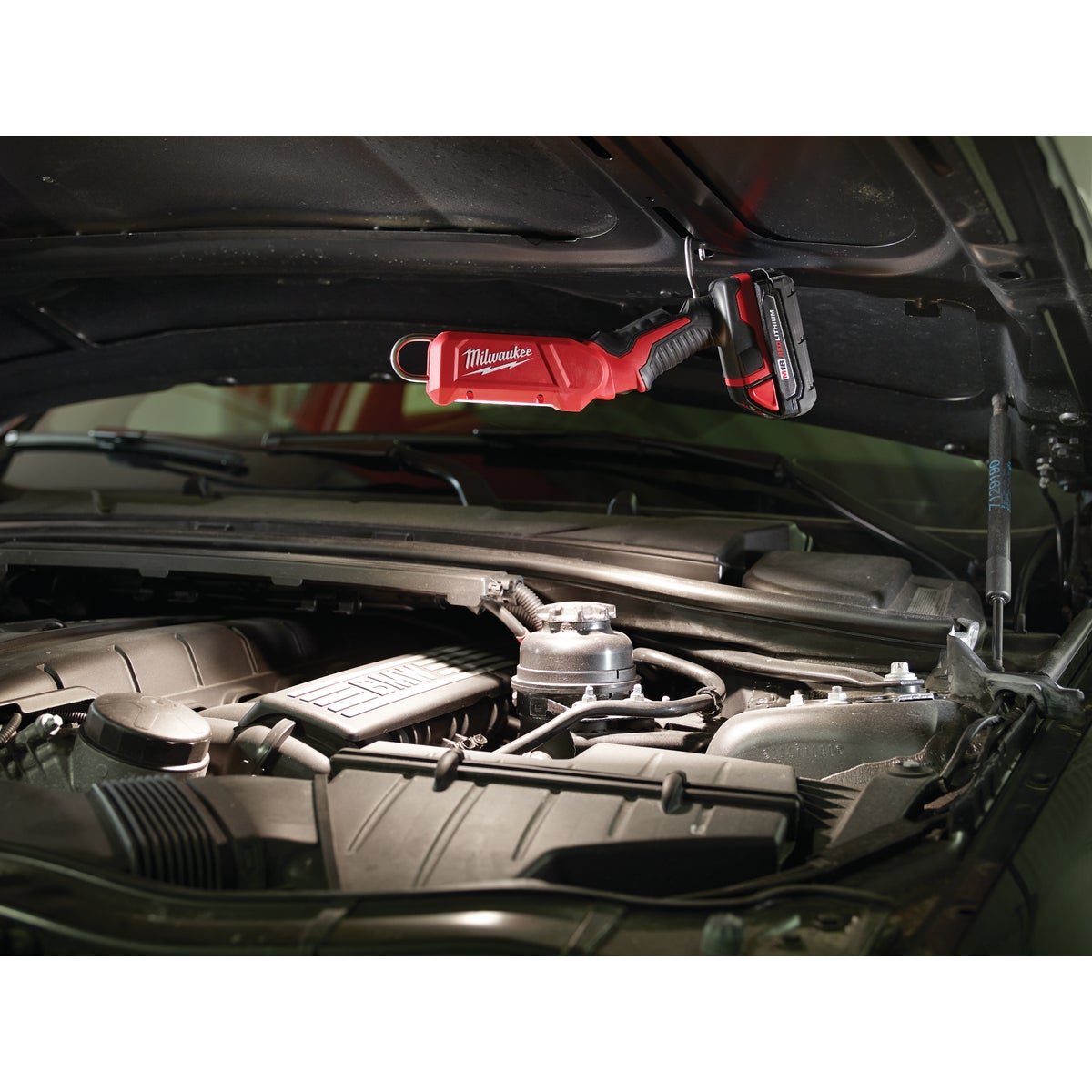 The M18 LED (light emitting diode) stick light features two light settings with three powerful LEDs. The high setting provides 300 Lm. and 140 lux for maximum coverage and light output, while the low setting provides 150 Lm. and 70 lux for interior work where a brighter light may not be necessary. Designed for the job site and increased productivity, the stick light features a replaceable, impact and chemical resistant lens that is engineered to stand up to the toughest work conditions, and two multi-position stainless steel hooks for hands free use. For added utility, a 45 pivoting head allows for 180 Deg. of versatile coverage. Compact design fits in tight spaces. Bare tool - battery and charger not included.