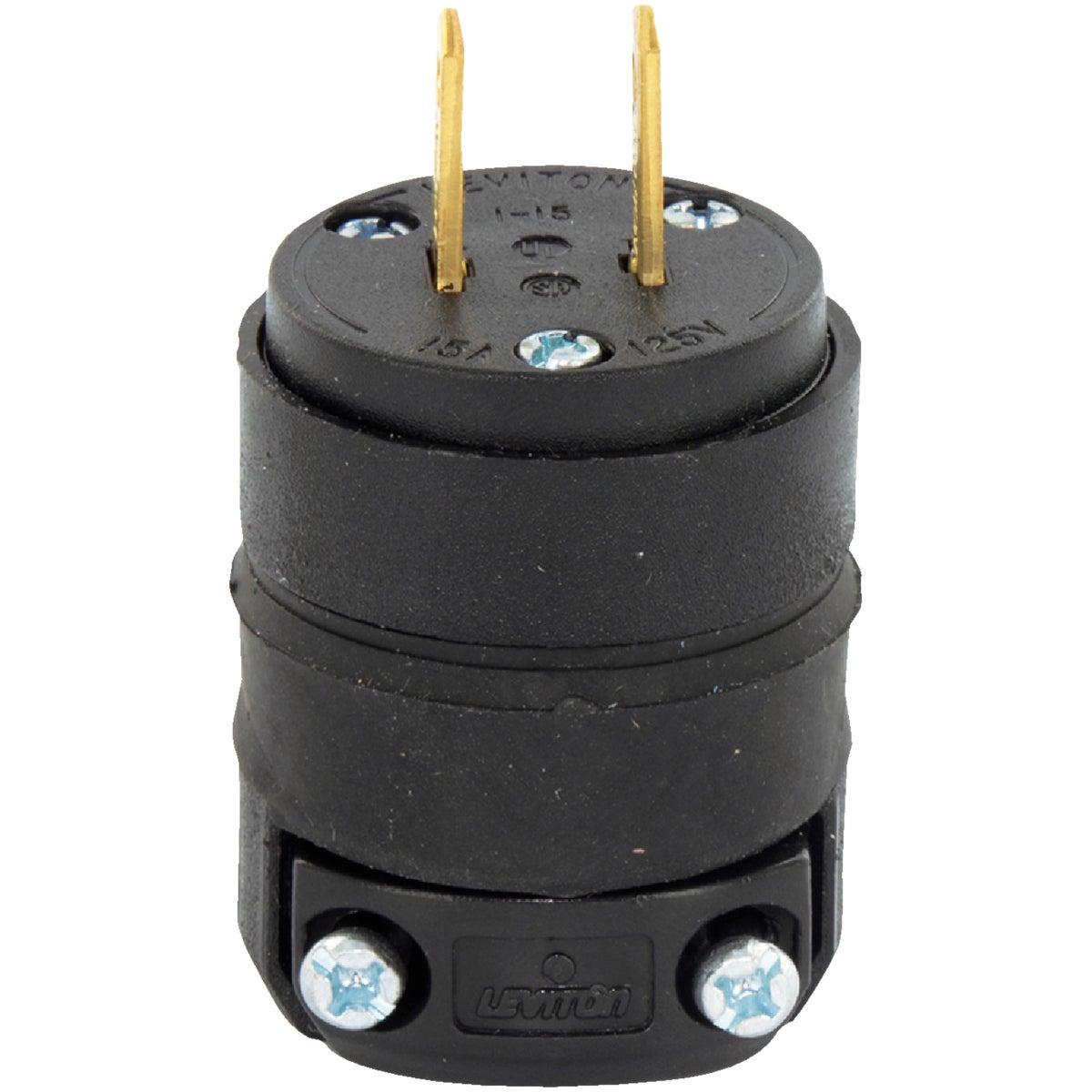 Residential grade. For rough use applications inside and outside the home. Rubber construction exposes no internal metal parts, cold tolerant materials. Triple combination screws, husk, and module keyed for easy alignment during wiring. Beveled edge prevents snagging when dragged. Use with 18-3 to 12-3 cable. 15A/125V. Black. UL (Underwriter's Laboratories) listed.