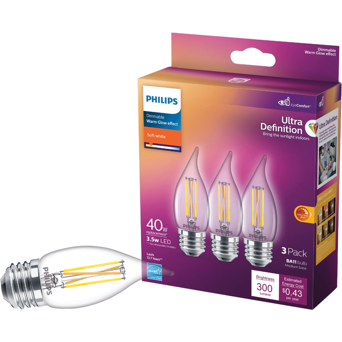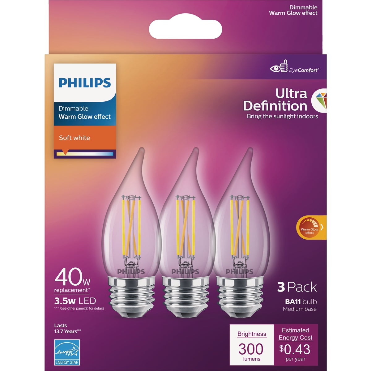 This Ultra Definition dimmable bulb is both comfortable for your eyes and enhances the way you see colors around you. With a high color rendering index (CRI) comparable to natural light, you can enjoy full- spectrum soft white light that brings out the true colors of your home. Meets strict criteria for EyeComfort, a standard developed to measure products against a set of key factors that can impact the comfort of your eyes. All packaging contains on average more than 8% recycled paper and will further decrease. Dimmable warm glow effect, enabling light levels to dim to the warm tones of traditional bulbs.