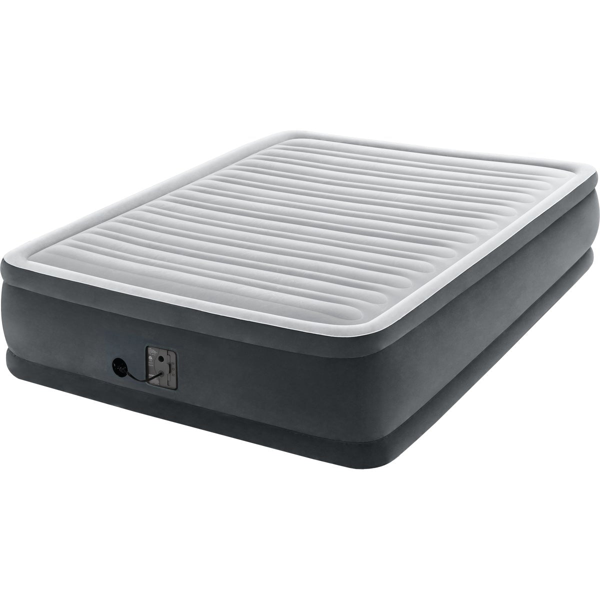 Queen-size elevated airbed that holds fitted sheets perfectly. Engineered with Dura-Beam technology comprised of thousands of high-strength polyester fibers for durability and lasting comfort. Ultra-lightweight bed adjusts to personal firmness preference. Sleeping surface is covered in soft flocking for extra comfort, and indented sides keep fitted sheets from slipping. Elevated height makes it easier to get in and out of. Features a built-in 110 to 120-volt internal pump that will inflate and deflate with the switch of a button. Approximate inflation time: 4 minutes. Includes carry bag with shoulder strap. 60 In. x 80 In. x 18 In.
