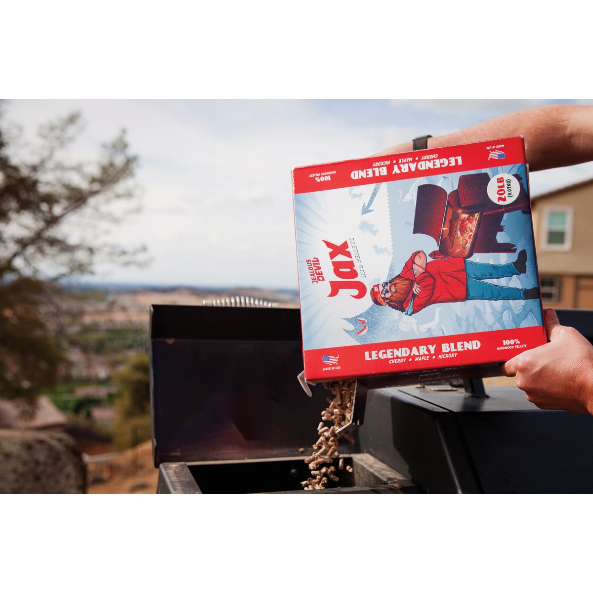 Wood pellet blend. Contains cherry, maple, and hickory hardwood. Features low-ash content and contains no fillers, chemicals, or binders. Comes in an innovative, weather-resistant box with custom, resealable pour spout. Optimized for pellet smokers to provide a longer and cleaner burn. Quality and consistency guaranteed. Exceed PFI standards.